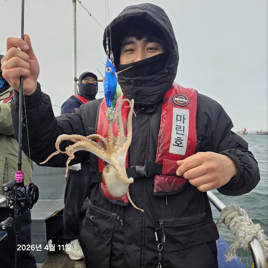 오늘 마린호는 힘든하루였네요즐겁게 출발했지만 바람과 오전 너울?아닌 너울로 고생을했네요 단체 7분과 몇몇분모시고 해무로 하루종일 추운하루를 보냈네요더 많이잡게 여기저기 다녀봤지만 좀처럼 움직이지않는 쭈꾸미....그래도 열심히 다녀왔습니다 오늘 장원은 이*형님,김*향님 축하드립니다오늘의간식 감사합니다