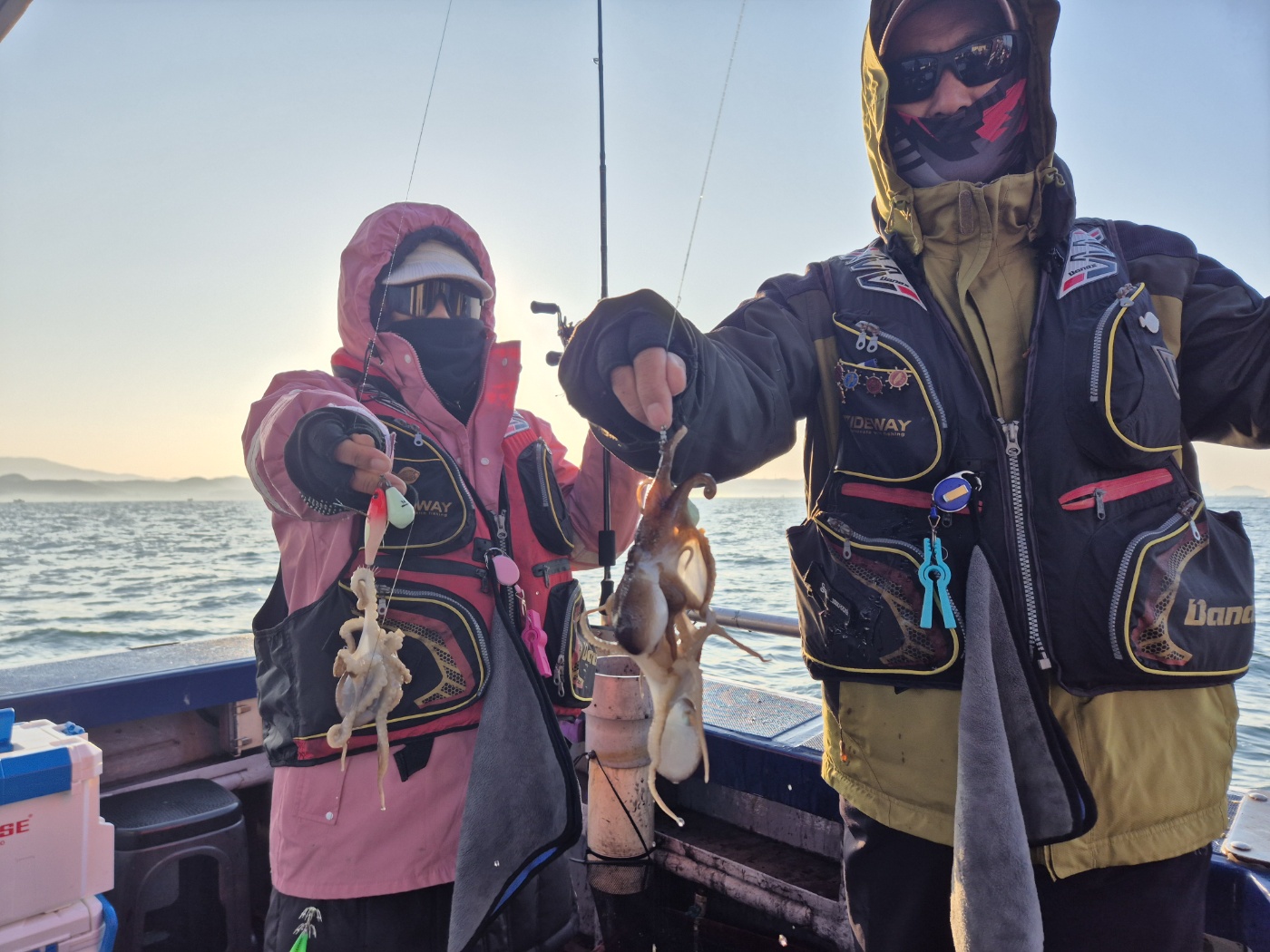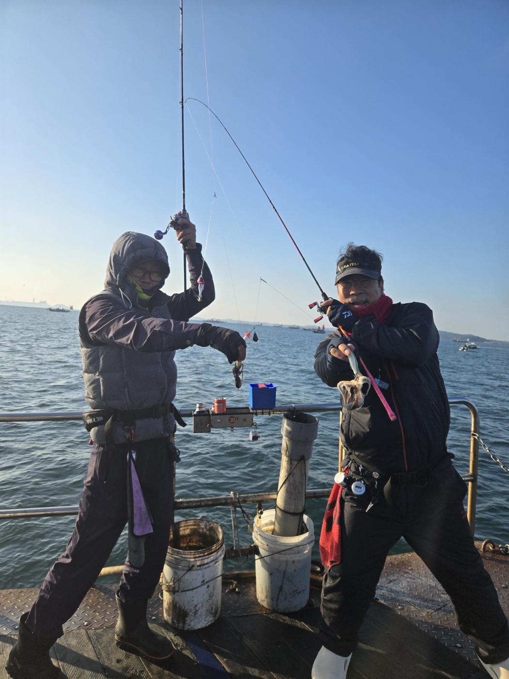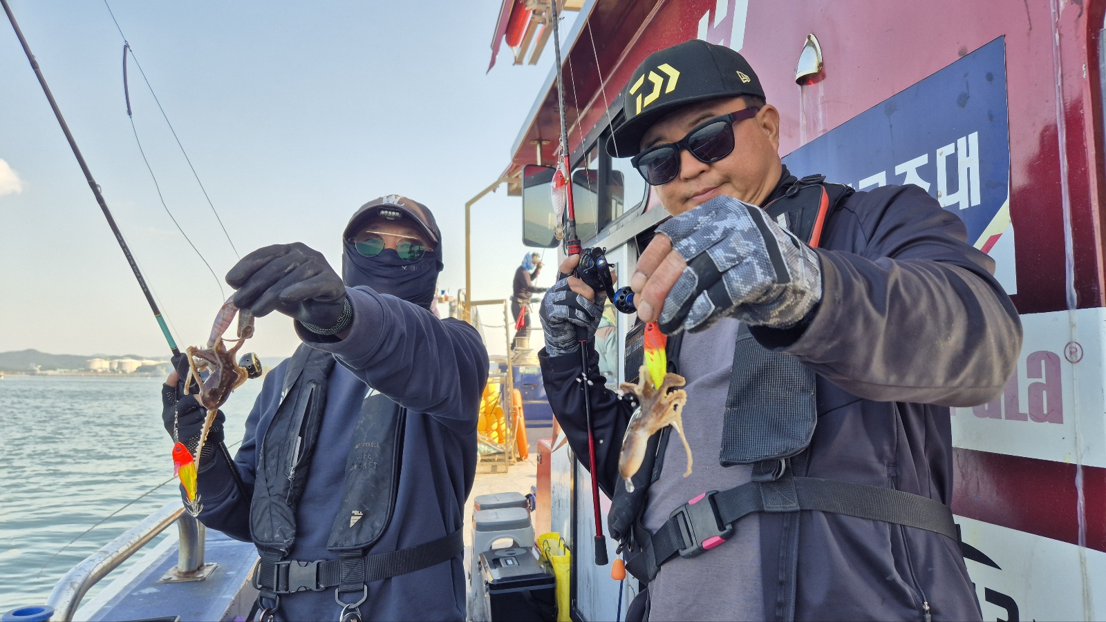 오늘도 대성호는 우리 손님둘과 신나게 놀다왔습니다 오늘은 어제와 다른 동선으로 왕 갑오징어 찾아 열심히 돌아다녔네요~ 포인트가 조금 거칠었지만 나오는 싸이즈가 평균적으로 좋았던거 같습니다~ 오늘도 우리 손님들 거친바닦에서 고생들 많이 하셨습니다~오늘은 두마리 토끼를(마릿수, 싸이즈) 잡은듯하네요~~내일은 조금 멀리~가볼까합니다~아직 생각중.......ㅋ장원: 박@명님, 이@영님 축하드립니다~ 완전중요사항 1.애기 요즈리 틴셀수박, (보라색,무지개색) 새우모양 완전필수 최소 3개이상씩 준비하세요~~~ 2.봉돌 : 무조건 30호