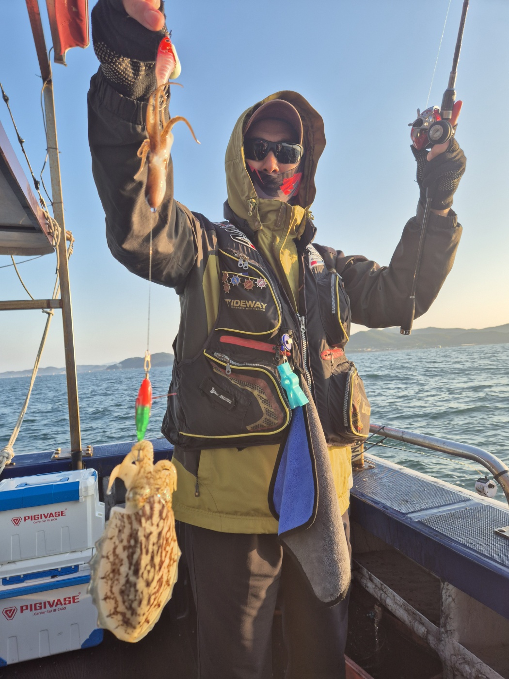 최근들어 가장잘나와주었습니다쓰리걸이 쌍걸이 하루종일 잘나와주네요200수오버 10분 그중 300오버 3분초보분들도 100수오버 150수전후나머지분들도 180수전후 모두다 잘잡아주셨습니다200수가 소원이라고 하신분이계셔서 소원들어드리고 들어왔습니다 ㅎㅎ사리때도 왠만큼나와줄듯하고. 돌아오는 조금때도 한번더 잘나와줄수도있을듯하네요조금은 내려놓고 놀러오시면 두손가득 잡아가실수도있을듯하네요^^