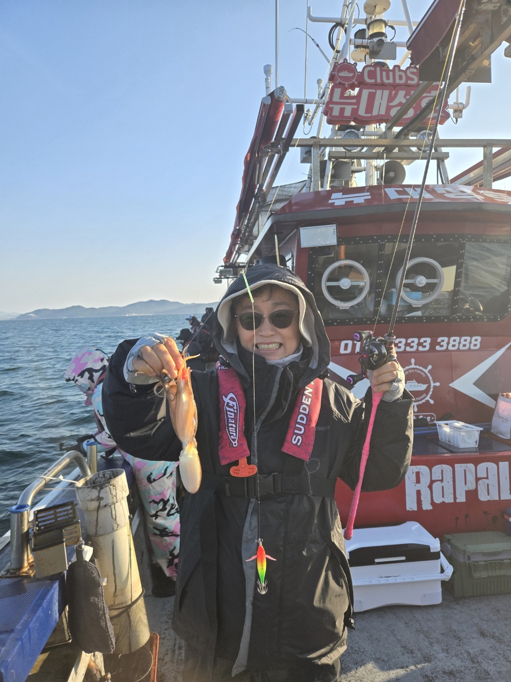 오늘도 대성호는 우리 손님들과 신나게 놀다왔습니다오늘은 마릿수 보다는 싸이즈로 가려고 마음먹고 출발~포인트까지 도착하는게 쉽지는 안았네요 어제 여파인지 너울이 너울이.....ㅠㅠ어찌어찌하여 포인트 도착 여기도 너울은 마찬가지 그래도 포인트를 포기못한게한마리 한마리 나오는데 싸이즈가 왕입니다요~~~~싸이즈보고 버티다보니 어느세 너울은 죽고 못잡던 분들도 한마리씩 잡기 시작하시고~다들 싸이즈보고 너무 좋아하셔 마칠때까지 싸이즈 찾아 열심히 돌아다녔네요~장원: 이@찬님 축하드립니다~~~ 완전중요사항 1.애기 요즈리 틴셀수박, (보라색,무지개색) 새우모양 완전필수 최소 3개이상씩 준비하세요~~~ 2.봉돌 : 무조건 30호