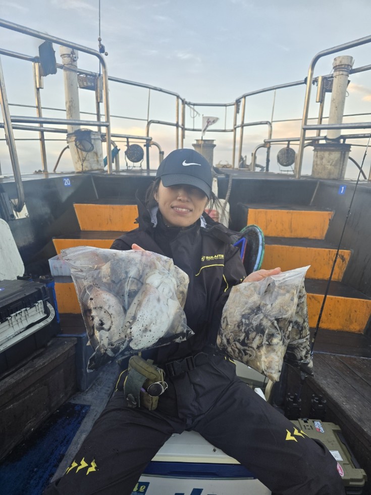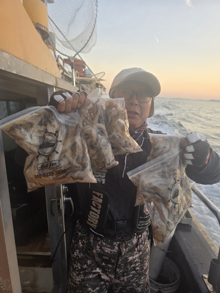 안녕하세요. 뉴대성호입니다. 오늘은 내만에서큰 씨알의 주꾸미만노렸습니다.조사님들께서 잘 잡아주셔서마릿수는 조금 아쉬울지 몰라도지퍼백 가득가득 채워가셨습니다.100수이상 다섯분, 감사합니다.