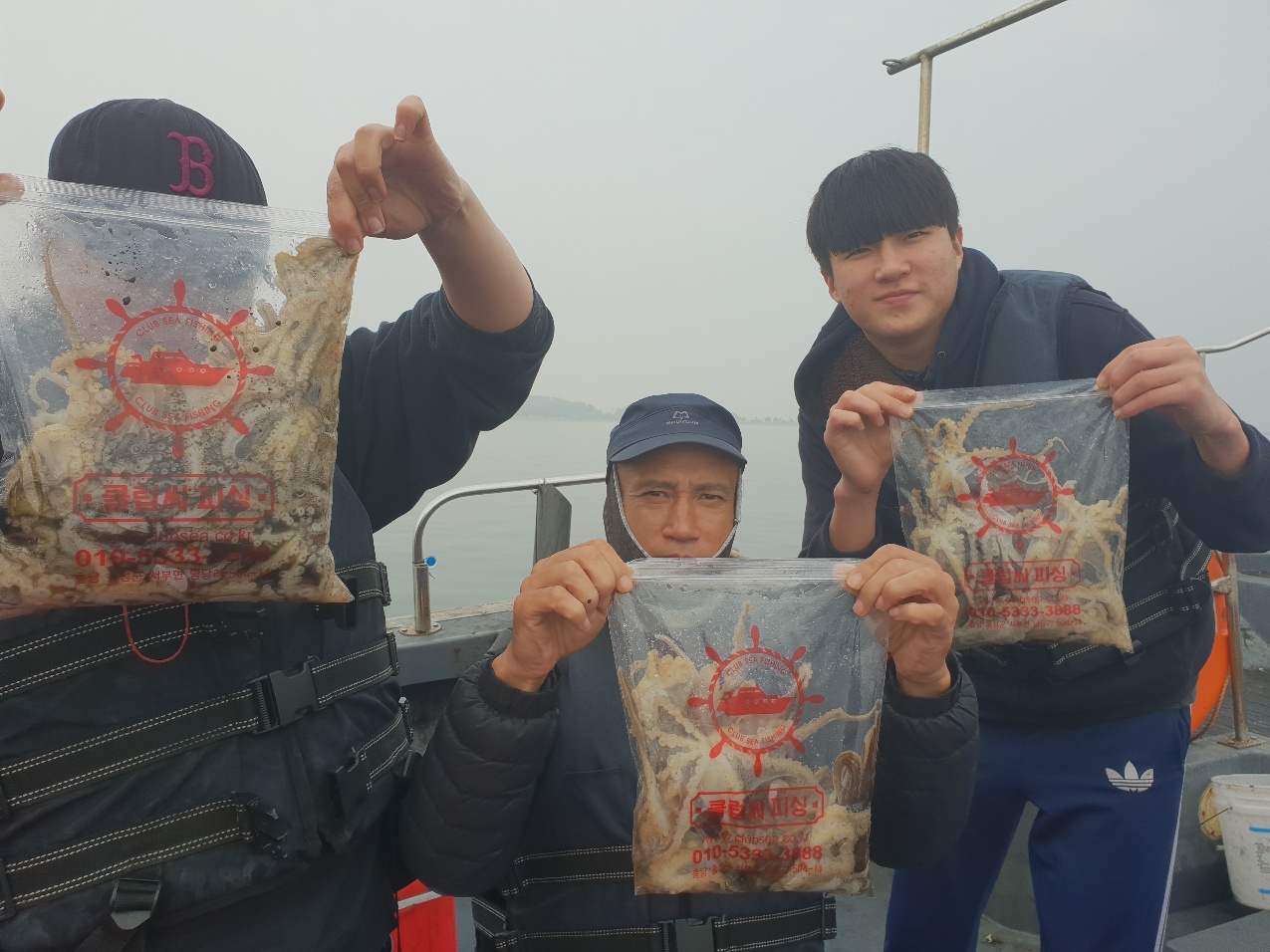 몇일동안 쎈바람으로 바다가 뒤집혔군요2일쉬고 나갔다왔습니다~많은배들이 몇마리못잡고 회항하였다고 하더라구요우리클럽씨는 조금이나마 나와줘서 잡고왔습니다적은양이지만요그래도 다들 수긍하시며 가시더라구요^^ 첫낚시 기념사진^^
