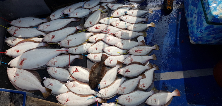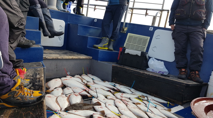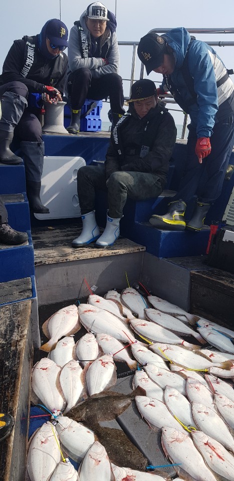 점심때부터 바람이 심하게 불어서 오전조황으로 마무리 된셈이네요.오전 10시쯤 약 50수정도 해서 오늘은 100수를 넘기겠구나 하고 생각했는데 딱 거기서 스톱하고 바람과 전쟁치르고 들어왔습니다.오늘 조황은 56수로 마무리했습니다.생새우로 농어포인트도 가봤는데 아직은 수온이 낮아서 입질이 없었습니다.대성호는 농어 나올때까지는 광어다운샷 위주로 낚시할예정입니다.오늘 해무에 바람에 모두 고생 많으셨습니다.감사합니다...