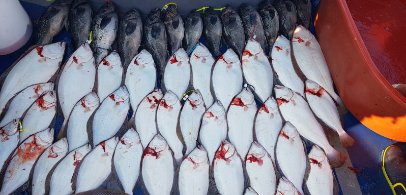오전에 좀 고전을 하고 오후부터 열심히 다녀서 진짜 먹을만큼 잡았네요.새우로 외수질하시는분과 광어다운샷을 하시는분 함께 낚시를 했는데 광어는 2분이 전체의 반이상을 잡았습니다.초보분들이 많아서 처음엔 고생좀 하셨을겁니다.그래도 열심히 잘 따라와줘서 고맙네요.농어를 잠깐해봤는데 낚시할만큼 마릿수가 안나올것같아서 포기하고 개우럭과 광어 집중했고 즐거운 하루였습니다.오늘도 모두 수고 많으셨습니다.감사합니다.