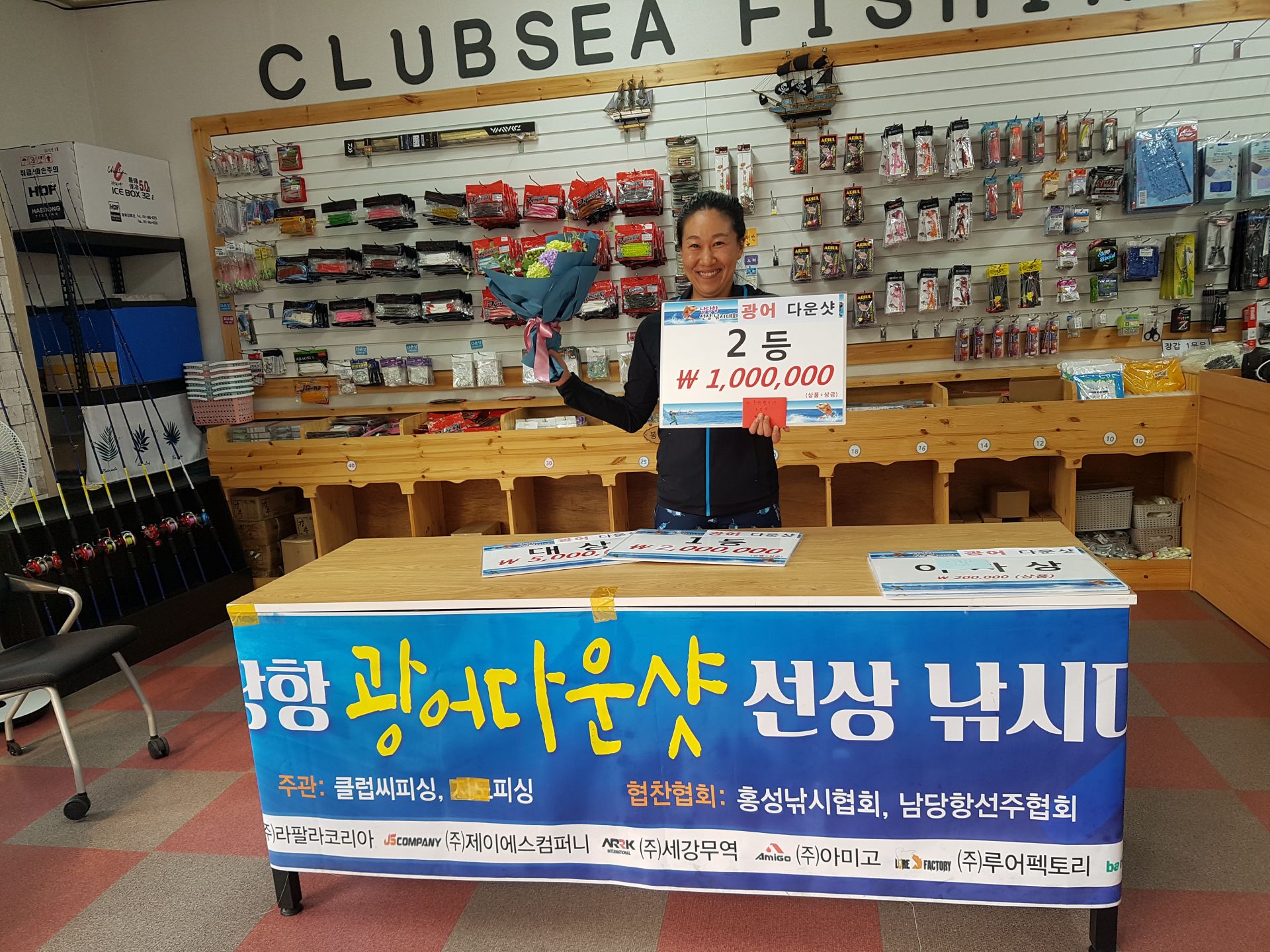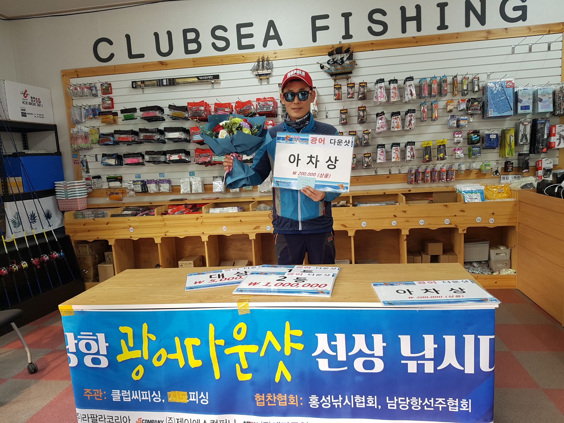 선단 선박 중 대성호, 용진호, 대성1호, 뉴대성호, 해랑호, 해성호, 뉴궁리호, 거정호가 새벽 5시부터 출항하여 15시까지 점심 먹는 시간마져 줄여가며 열심히 해주셨는데요. 날씨가 좋지 못하여 약간의 아쉬움이 남았습니다. 지난 참돔대회와는 다르게 각 선박마다 1, 2등을 선별하여 다운샷로드, 참돔로드를 선박마다 각각 시상하였으며 전 참가자에게 웜 5세트를 증정하였습니다. 그 중 큰 사이즈는 선별하여 출조점에서 재 계측 후 시상하였는데요. 그 결과는... 뚜구뚜구뚜구뚜구구뚜뚜구구... 짜잔~