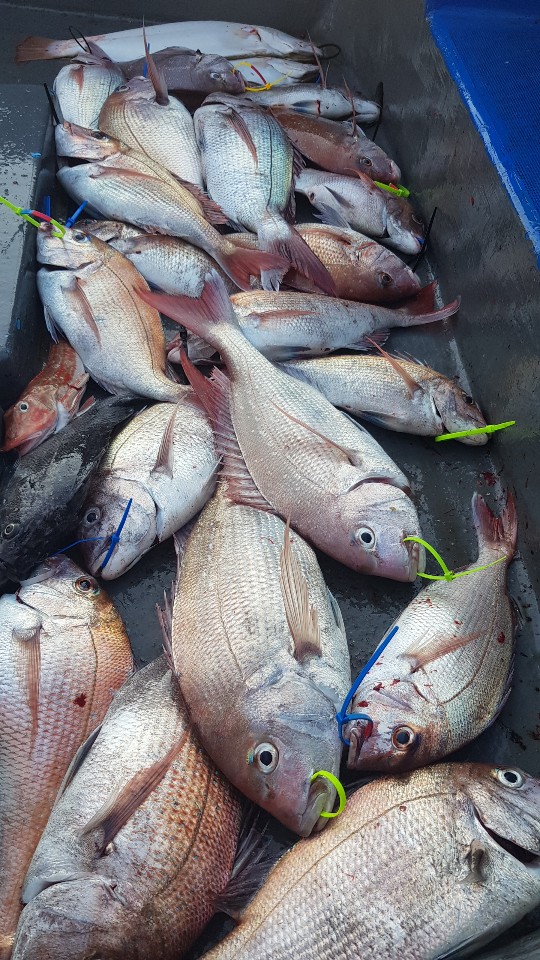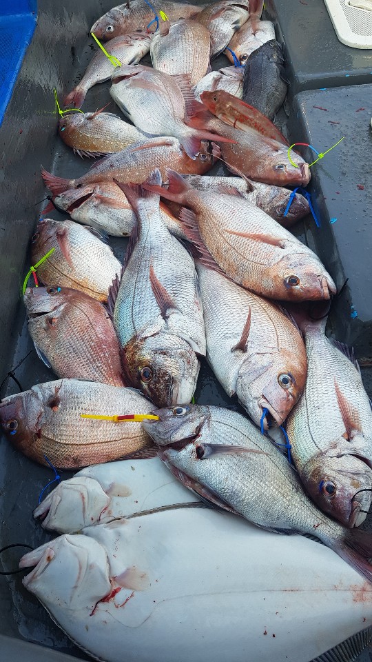 오늘 타이라바가 처음이신 분이 두분 계셨는데 합쳐서 5마리라는 쾌거를 낳았습니다. 제가 잘 알려주었지요^^ 아무튼 금일은 "꽝"없이 모두들 손맛 제대로 보셨으며 가시는 길에 쿨러에 나름 더 챙겨드렸습니다. 오사장님, 봉사장님 고기 찬조 감사합니다. 월요일에 또 뵙겠습니다. 오사장님. ㅋ 마지막으로 심사장님, 오늘 큰일하셨습니다. 고맙습니다.
