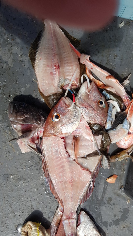 오늘 선미에 단체분들께서 출조점에서 대여하신 로드와 릴로 열심히 잡아내셨습니다. 시마노 염월리미티도, 다이와 코우가 구하기 힘든 그놈, NS 퓨리어스 보론대가 무색할만큼 출조점에 비치된 굿시아로드와 마탄자릴!! 대단!! 아래 조황사진이며 내일도 조촐하게 출조합니다^^ 재미있는 타이라바 얼마 남지 않았네요~