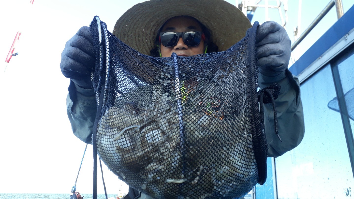 몇 년전만 해도 쭈꾸미는 조업이라는 표현을 했는데이제는 쭈꾸미도 고도의 테크닉이 필요한 거의 전문낚시의 수준으로 올라가는 듯 합니다.바람,너울, 센물때등 모든 악조건에도 불구하고 저희 배에서는 올해 처음으로 10kg 오버가 나왔네요....심한 너울에도 선수에서 멀미와 싸우시고 결국 10.5킬로 달성하신 불굴의 의지를 지닌 조사님께 자랑스러워 하시라는 제 마음의 표현으로 사진올립니다.^^아 못잡으신 분은 2킬로대 잡으신 분도 계시네요ㅜㅜ담에오심 더 많이 잡아가실 수 있도록 노력하겠습니다오늘 정말 고생많으셨던 뉴해랑호 조사님들께도 감사를 드립니다.수고 많으셨고 안전히 댁에 귀가해서 편히 쉬셨음 좋겠네요...