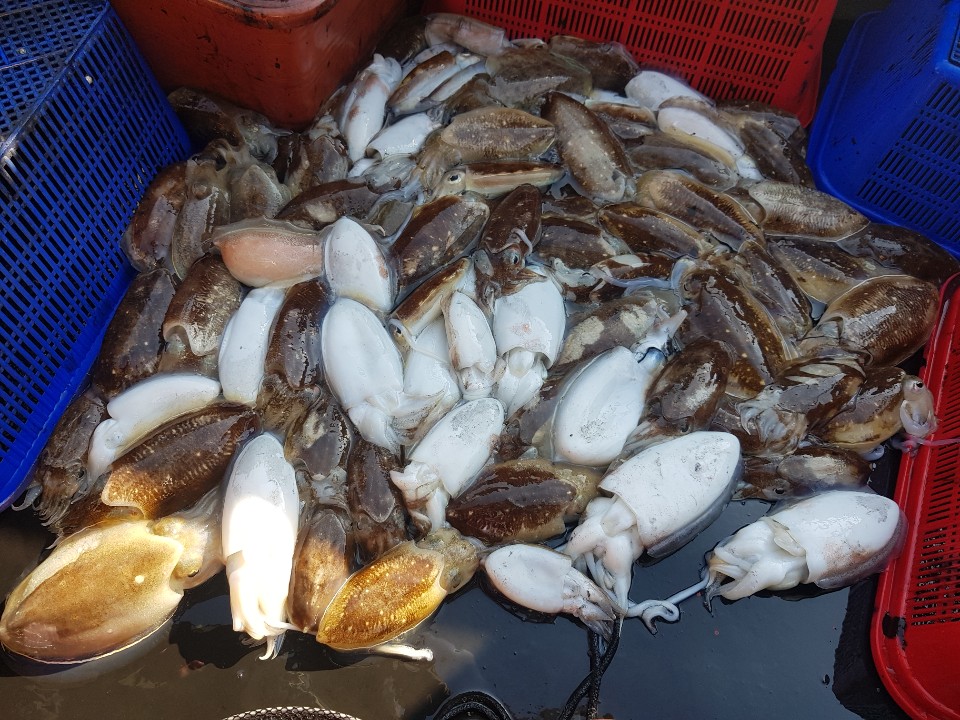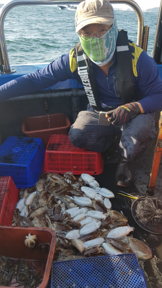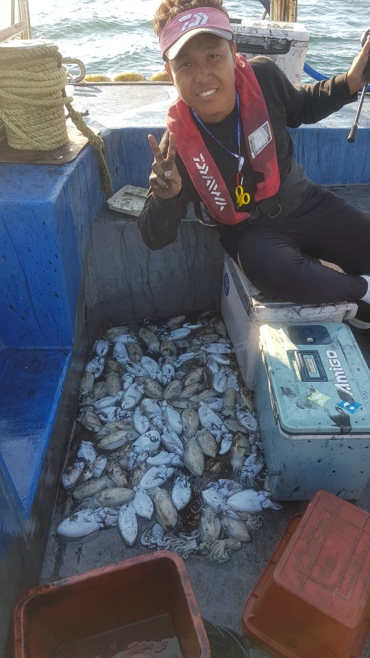 갑오징어는 개인실력 + 로드 + 에기 = 조황 으로 이어집니다. 참고하시고요. 금일 최고가 90여수이며 선수, 선미에서 공동1등 하셨습니다. 그 외 80여수 70여수 등...