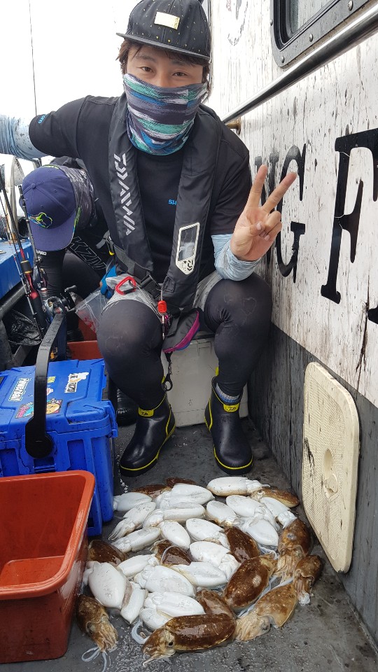 19. 09. 27. 금요일 거정호 갑오징어 조황!!안녕하세요. 조PD입니다.오늘은 조사님들 모시고 약간 멀리 다녀왔는데요. 금일 오전이 쏟아진데 반해 오후에는 올리시는 분만 올려주신 하루였던 것 같습니다.조황 격차가 있었던 아쉬운 하루였습니다. 오신 모든 분들 한 분도 빠짐없이 "아~ 오늘 즐거웠다!" 하실 수 있도록 조황이며 서비스며 더 챙기는 거정호가 되겠습니다.날씨가 오전은 추운데 반해 오후는 엄청 덥습니다. 외투며 얼음물이며 준비해서 오셔야 쾌적한 낚시가 가능할 듯 합니다.금일은 에기선택이 조황을 좌우하였습니다. 우선 야마계열 수박, 고동색(AJ), 청색(고등어색), 요XX레이저 블루는 기본인 것 같습니다.아래 조황사진 올려드리며 찍은 모든 사진은 네이버 거정호 카페에 올리도록 하겠습니다. 감사합니다^^P.S. 선실에 옷 두고 가신분 계십니다. 출조점에서 찾아가세요~~