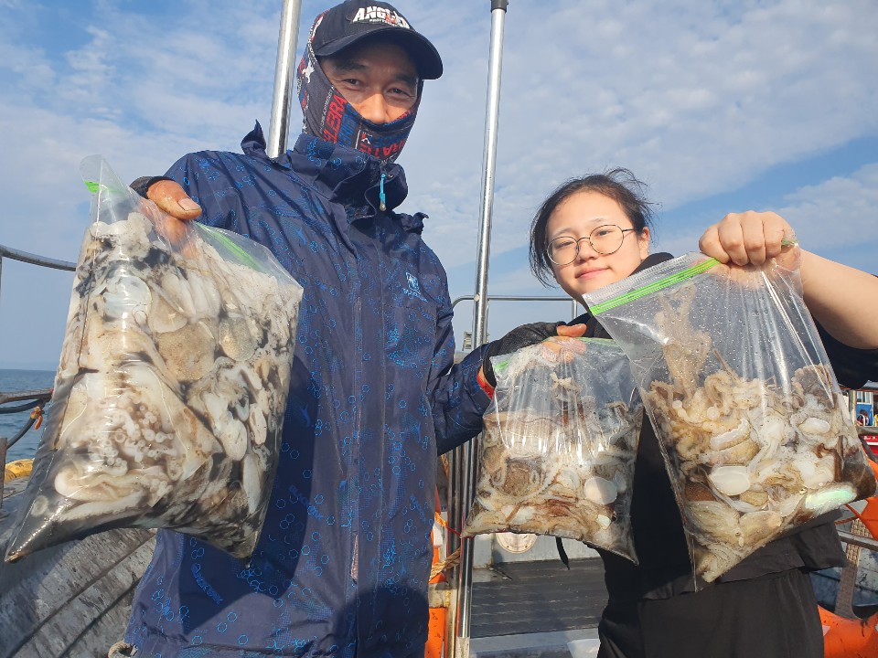 주꾸미가 잘안나와줍니다~갑오징어라도 잡았어야했는데초보분들이 많이 찾아주셔서 쉽지는 않았네요~죄송합니다~~조황이좋으면 조사님덕이요조황이 안좋으면 선장탓입니다~~그래도 매너좋게 이런날도있지요 하고가시니 더죄송합니다~시즌최저조황이긴하지만 조금씩 드실만큼 잡아가셨습니다~죄송해서 사진도 몇장만찍었습니다~다들 고생하셨고 수고하셨습니다^^ 엄마아빠딸 가족 기념사진입니다 엄마는 주무셔서 둘만찍었습니다