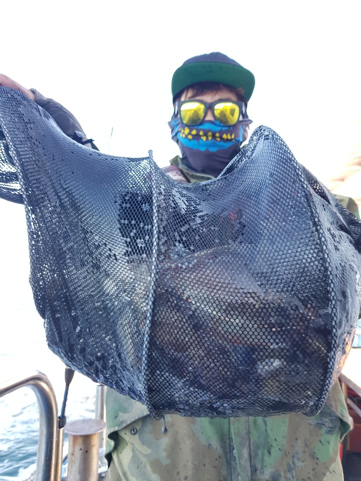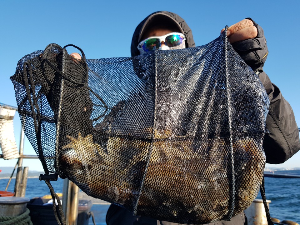 다행히 배가 좋아 파도와 싸우며 갑이사냥을 진행하였는데요. 입질이 약해 당기지 않고 매달리기만 하여 잡아내기가 여간 쉽지 않았습니다.