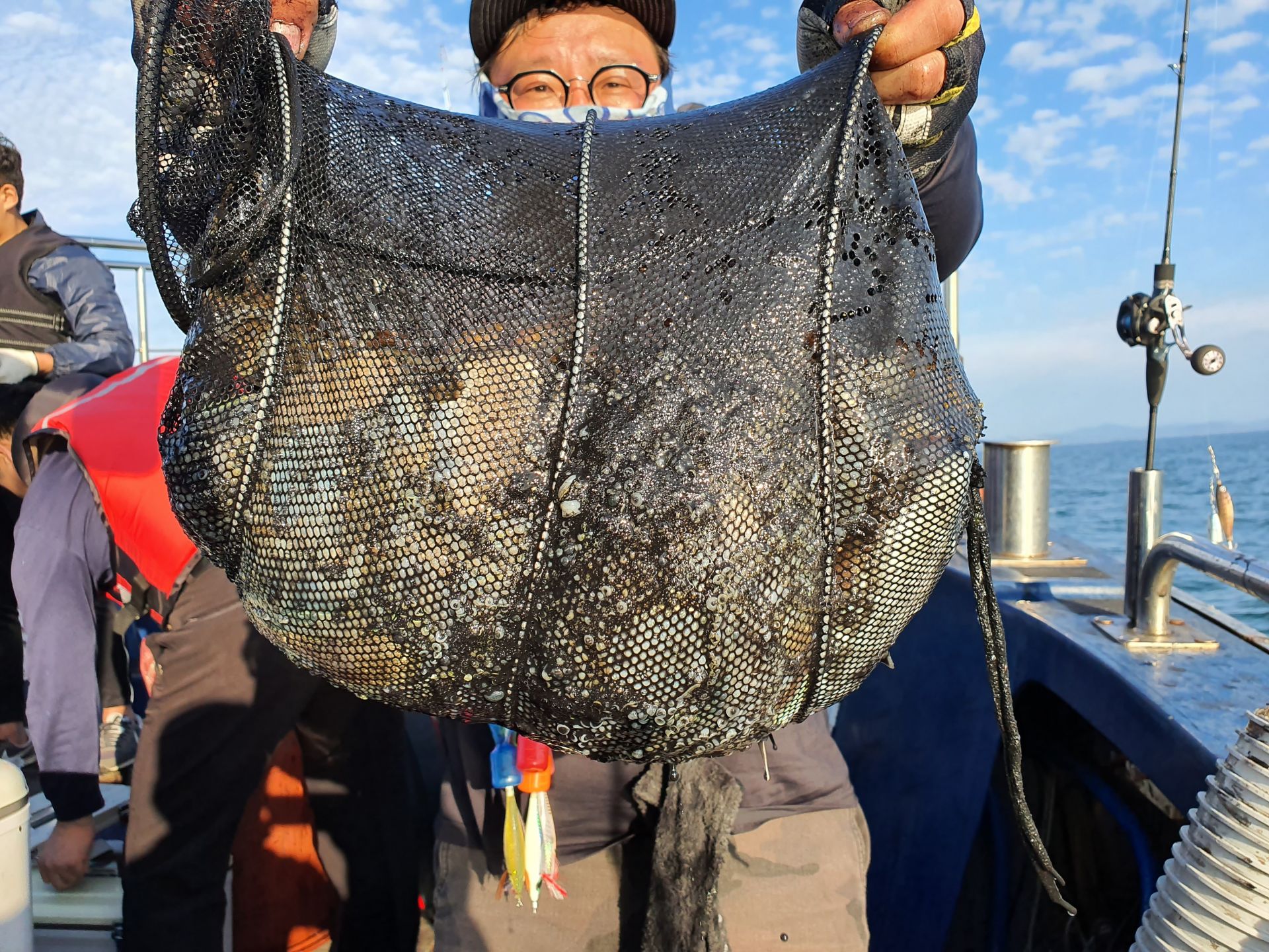 어제와같지않군요~대신씨알이크고 갑오징어가 많이나와줬습니다오늘은 4커플부부가오셨는데 초보커플은 많이못잡았지만3커플은 많이잡았군요^^초보커플만 사진을 못찍어드렸네요 ㅠ나머지분들은 다찍어드렸습니다~오늘도 고생많으셨습니다~^^자세한 내용은 블로그로 놀러오세요~