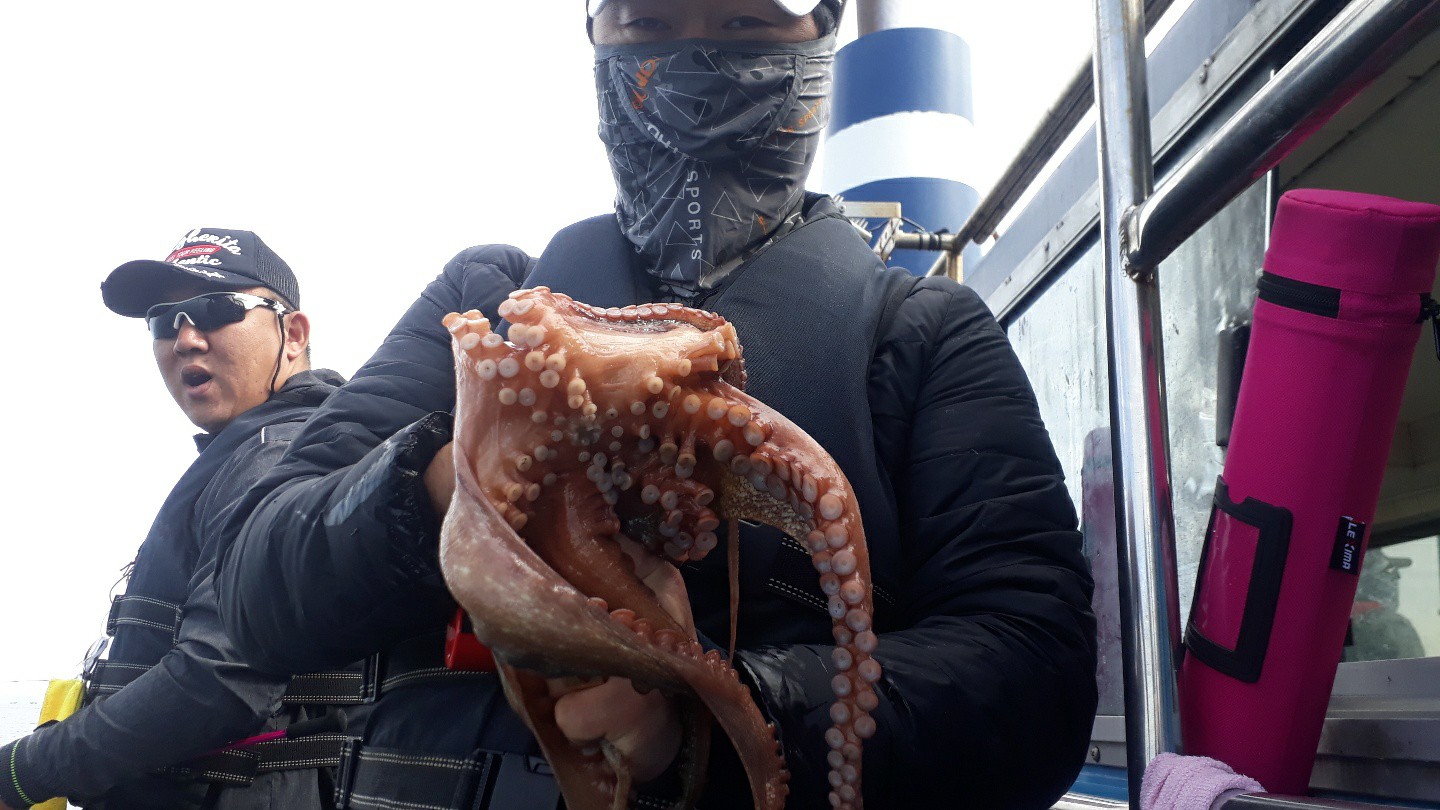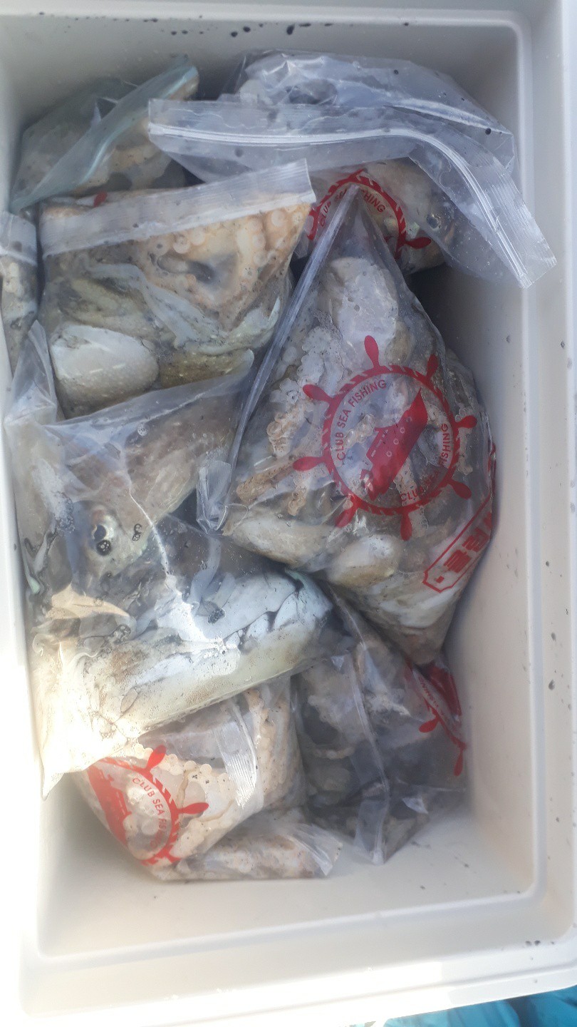 아침부터 잘나오는건 아니지만 꾸준히 나와준 하루였습니다.갑오징어도 잘 나와줬구요.오늘 대타 사무장으로 온 이 선장이 갑80여수를 했네요.10킬로 이상이 4-5분정도 되는것 같고 나머지 분들도 어지간히는 잡은것 같습니다.오늘도 모두 수고 많으셨습니다.감사합니다.