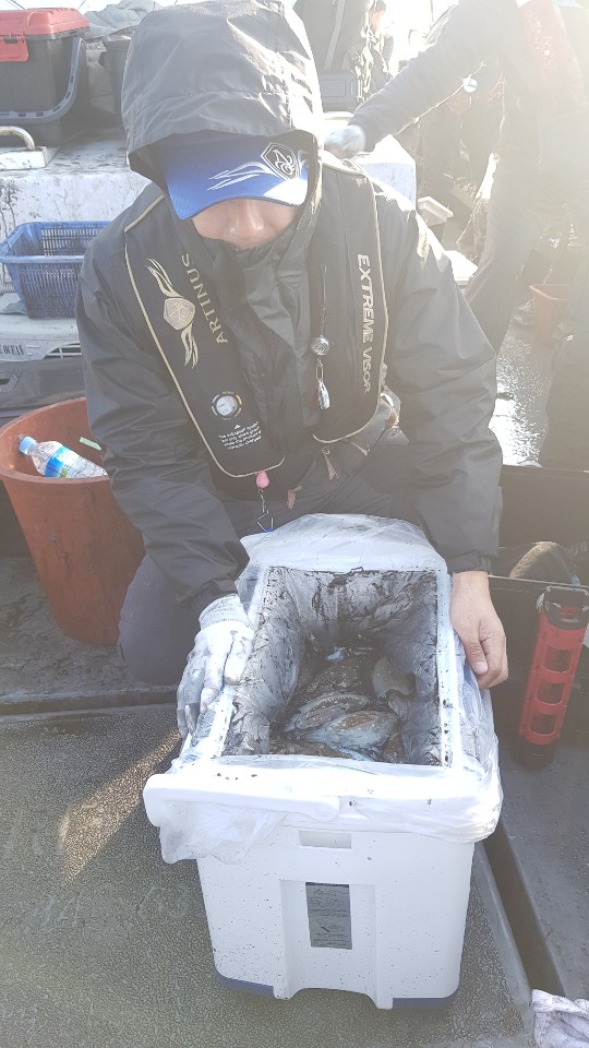 19. 10. 22. 거정호 갑오징어 조황!!안녕하세요. 조PD입니다. 금일은 씨알위주로 돌아다녀봤습니다. 아쉬운 것이 있다면 개인 조과 차이가 컸다는 것이 안타까웠답니다TT금일은 1번조사님, 2번조사님, 10번조사님, 11번, 12번 조사님께서 선수셨습니다. 수고많으셨습니다. 여성조사님 두분이 승선하셨는데 바다에 떨꿔진 낚시대를 11번 조사님께서 올려주셨어요. 감사드립니다. 11번 조사님이 이경수님이시던가?! 오늘 주신 것도 감사하고 젠틀하심에 반했습니다. 자주 뵙겠습니다~~5번 김범태님도 4번째 오셔서 오늘 가장 많이 갑이사냥하신 듯 합니다. 오후 조황이 받쳐줬으면 더 하셨을텐데... 아쉬워요~아래 조황사진 올라가며 금일 모든 사진은 카페에 있어요~~