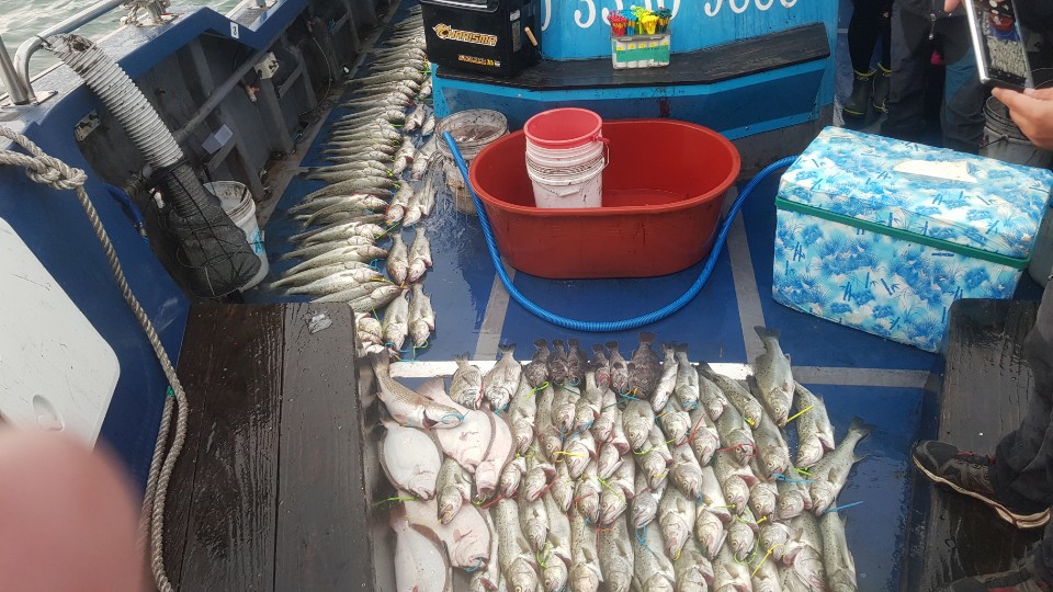 19. 10. 30. 수요일 거정호 갑이조황!!!풍랑으로 이틀동안 선박정비하고 금일 먼바다로 댕겨왔습니다명부에 아는 성함도 안계실 뿐더러 선내 구명조끼가 불티나게 팔려 조황을 걱정했는데...마릿수가 많진 않았지만 사이즈가 좋아 손맛이 괜찮은 하루였습니다.금일 찍은 모든사진은 카페에....