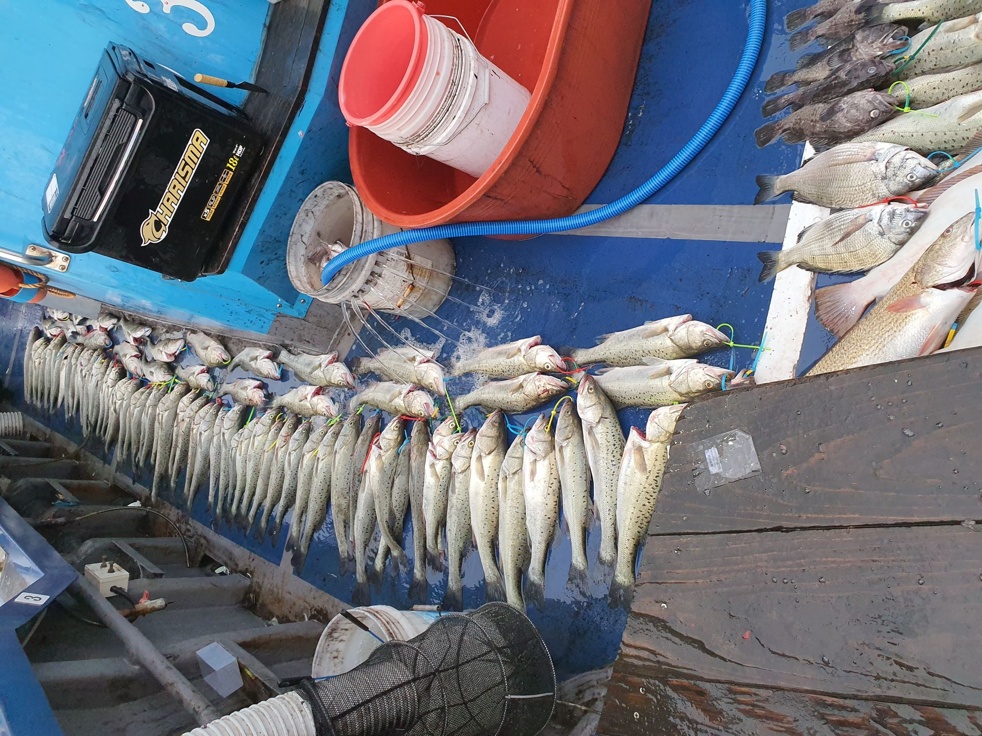 오늘 한 70마리정도 잡고 들어오면 좋겠다고 생각하고 출항했는데약 170여수 잡고 들어왔습니다.우리 사무장님과 정신없이 뛰어 다녔는데 행복했습니다.오늘 오신분들도 모두 즐거웠으리라 생각합니다.모두 열심히 해주신 덕택입니다.새우가 준비가 되면 다음주부터 또 농어외수질 출항할 계획입니다.모두 모두 고생 많으셨습니다..감사합니다.
