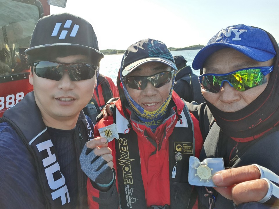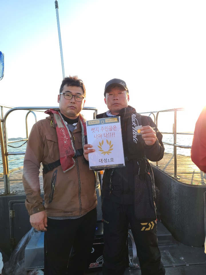 안녕하세요^^ 뺏지 이벤트 인증 특파원 오늘도 남당댁입니다.오늘은 뺏지 인증 현장에 나가보았는데요!참 스팩타클하고 다이나믹한 하루였습니다.자세한 내용은! 토요일에 올라올 뉴대 영상 확인하시죠!자! 오늘 뺏지주인공은? 오늘 뉴대성호 탑승하신 양태환님과 팀 일행 두분이십니다.! 왜 한광어에 두명이냐구요???두분동시 히트, 한분 털리시고 양태환님이 끝내 9자 광어 올리셨어요, 뜰채질하다 한번 털린 대성호 선장님 식겁했쥬? 하지만 옆에서 양태환님 훅으로 재 뜰채질! 갑진!! 93센티 광어 나왔습니다.!! 축하드립니다.^^   하루전 급 출조하신 이승수님!!! 오늘 1센티가 더 컷더라면 대물 참돔 뺏지1 + 배1등 1 해서총 2개 가져가실 수 있었는데ㅜㅜ 정말 아쉽습니다!!!  그래도 축하드립니다.^^
