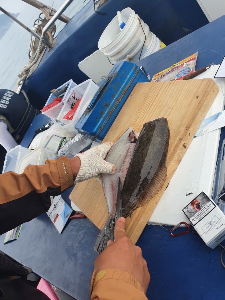 아차 그리고 10여년 만에 초보 조사님 덕에 손낚시도 했내요 초보 조사님께서 희트를 했는데 릴이 고장이 난거죠 그래서 제가 69짜 광어랑 밀당을 해서 간신히 올렸내요 오늘은 참 신기한 하루였습니다(우리 선수 분들이 많이 못잡아 마음에 많이 걸리긴 했습니다,,ㅠㅠ)
