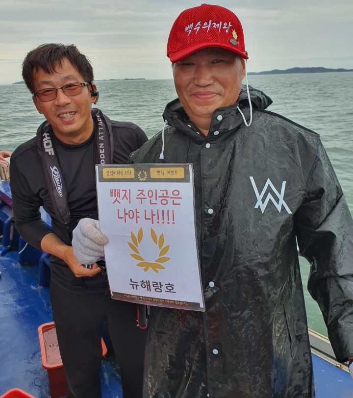 오늘도 반짝? 날이 좋았습니다.중간중간 비가오긴했지만, ^^ 크게 방해되지 않았어요8월 12일 뺏지 주인공은 누규실까요?뉴대성호 승선하신 정상철님이십니다.^^ 뉴해랑호는 오늘 공동1등이네요!!자칭 해랑호 낚시 모델 안혁기님과 조철승님이십니다.^^ 축하드립니다.