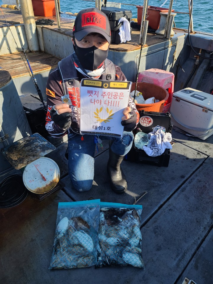 안녕하세요! 조피디입니당~요즘 주꾸미낚시하면서 심심치 않게 문어가 자주 등장합니다.무거운 무언가가 올라온다면 일행에게 뜰채를 요청하세요.단, 문어라면 랜딩 중 초릿대에서 움직임이 느껴진답니다.그럼 주꾸미 갑오징어도 올리시고 용왕님이 붙여주시는 문어도 득템하러 오세요~그렇다면 오늘의 뱃지 주인공은 뉴규?뉴궁리호 손승우님용진호 박광남님대성1호 신춘식님대양호 김광춘님해성호 송동억님동백호 오병기님뉴대성호 유균상님뉴대성호 조성권님무게가 아주 비슷하여 공동수여합니다.해랑호 임영철님해랑호 신현수님여기도 공동우승뉴해랑호 전영식님대성호 이영일님화성호 노철훈님레드원호 윤시순님모두모두 축하드립니다^^