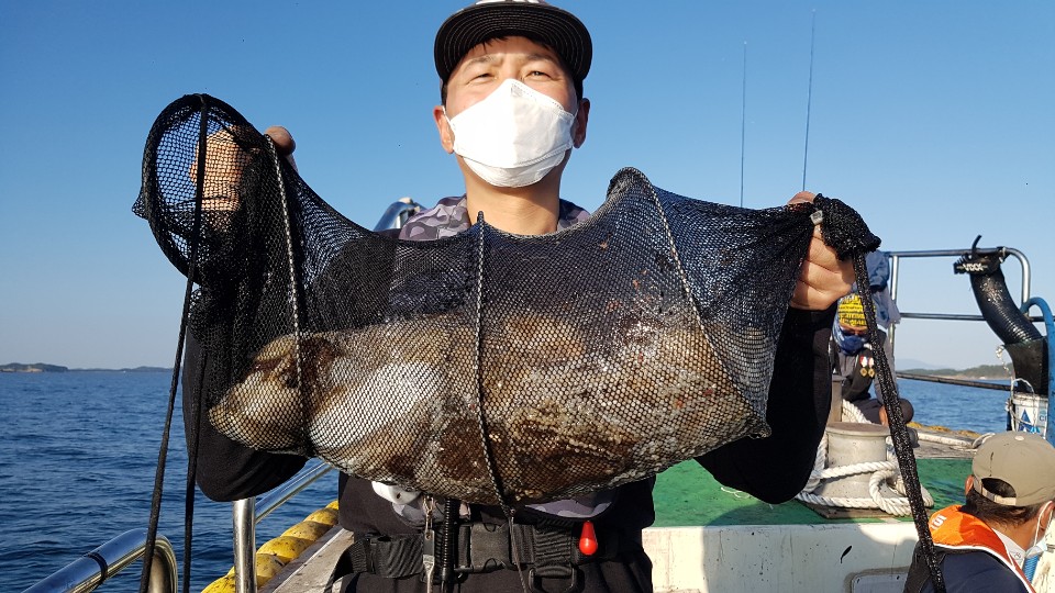 바람이 강하진 않았지만 힘든하루였습니다.오전엔 간간히 심심찮게 올라왔었는데 오후들어 나름 옮겨다녔던 포인트에서 이렇다할 조황이 나오지도 않았고 급유 관계까지 겹치고 귀한 시간 만들어 어려운 걸음 해주신 조사님들 시간만 허비하는 우를 범하였네요.급유시간 때문에 많은시간 기다리시느라 힘이 드시고 짜증 나셨을법도 한데 탓하시는 말씀 한마디 안하시고 묵묵히 기다려 주셔서 오후내내 죄송한 마음뿐 이었습니다.선장의 부족함에도 탓하는 말씀없이 열심히 해주신 조사님들께 감사드리며 오늘 이벤트 뱃지의 주인공이 되신 황인길 조사님 축하드립니다.다른 조사님들도 오늘 하루 너무 고생 많으셨습니다.안전귀가 하시고 내일 푹 쉬시고 즐거운 주말보내시길 바랍니다.감사합니다.