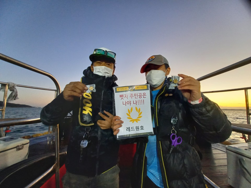 오전은 약간의 해무에 바람도 없고 물도 가지않는 날씨였습니다.어제와 같이 포인트마다 한마리씩 뜨문뜨문 나오는 조황이었습니다.오후들어 바람이 약간 불기 시작하더니 동시에 입질도 뚝 끊기고 해서 여러 포인트로 이동하였으나 성과가 미미했지만 그 와중에도이명재 조사님께서 선방하시어 이벤트 뱃지의 주인공이 되셨습니다. 축하드립니다.다른조사님들도 고생많으셨고 조황을 올리고자 잦은 포인트 이동으로 시간을 허비하게 해드려 죄송했습니다.레드원호를 찾아주셔서 감사드리고 무사히 귀가하시길 바랍니다.