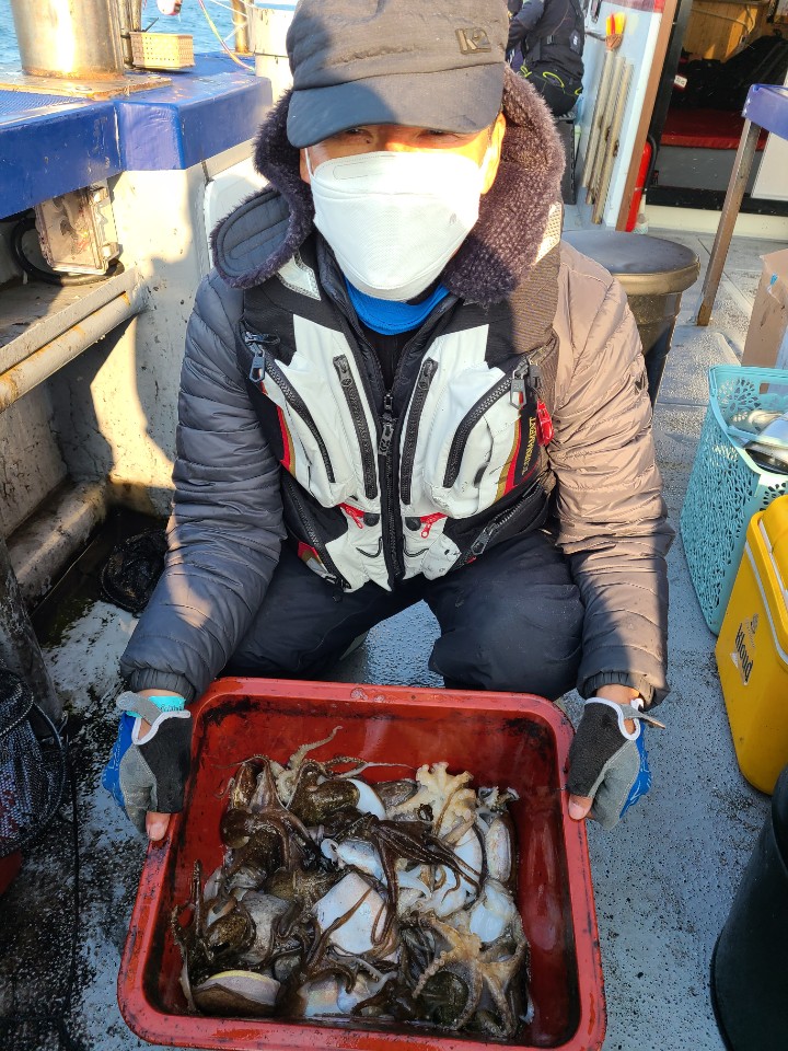저희수나2호를 찿아주신 조사님들께 감사드립니다. 오늘도 수고 많이 하셨습니다. 12월12일 수나2호 조황사진입니다.  주꾸미 잡고왔습니다...