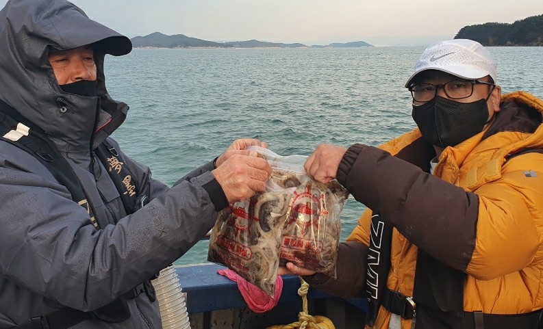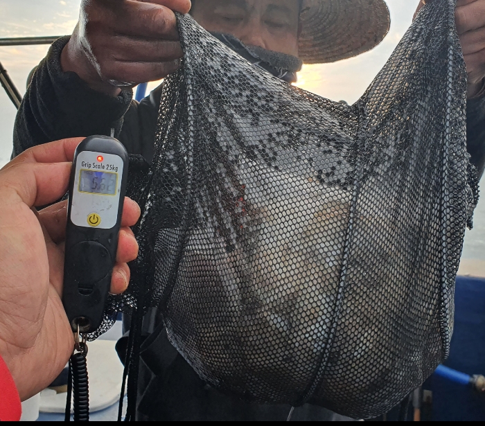 첫 포인트를 5분 이동하여 찍고 또 5분 이동 또 10분이동 포인트를 찍을때마다 한두분만 잘 잡으시고 나머지 손님들께서는 많이 힘들어 하시더라구요 그 이유는 주꾸미 개체수와 활성도 문제인거 같아 초보님들도 잡으실수있는곳을 찾아 멀리 이동해봅니다 한시간 가량 이동하여 다시 낚시를 시작했고 그나마 못잡으시던 분들도 한마리 한마리 잡고계셨고 그렇게 점심먹기 전까지 낚시를 했고 물이 돌고 나서는 너무 안나와 제가 자주 가는곳으로 이동 역시 이 포인트는 저를 실망 시키지 않습니다 다른 배 한대 없이 낚시를 하시는데 잘 나와 주더라구요 수심도 낮아서 초보님들도 잘 잡으시고 잘 잡으시던 분들은 꾸준히 잡으시고 요즘 시즌에 이정도면 잘 나오는거 같습니다 그렇게 복귀하기 전 까지 한곳에서 낚시를 했내요~주꾸미 낚시 하면서 본인이 잡은 주꾸미 많이 못잡으신분 드리라고 나눔도 해주시고 참 훈훈하고 즐거운 하루였습니다