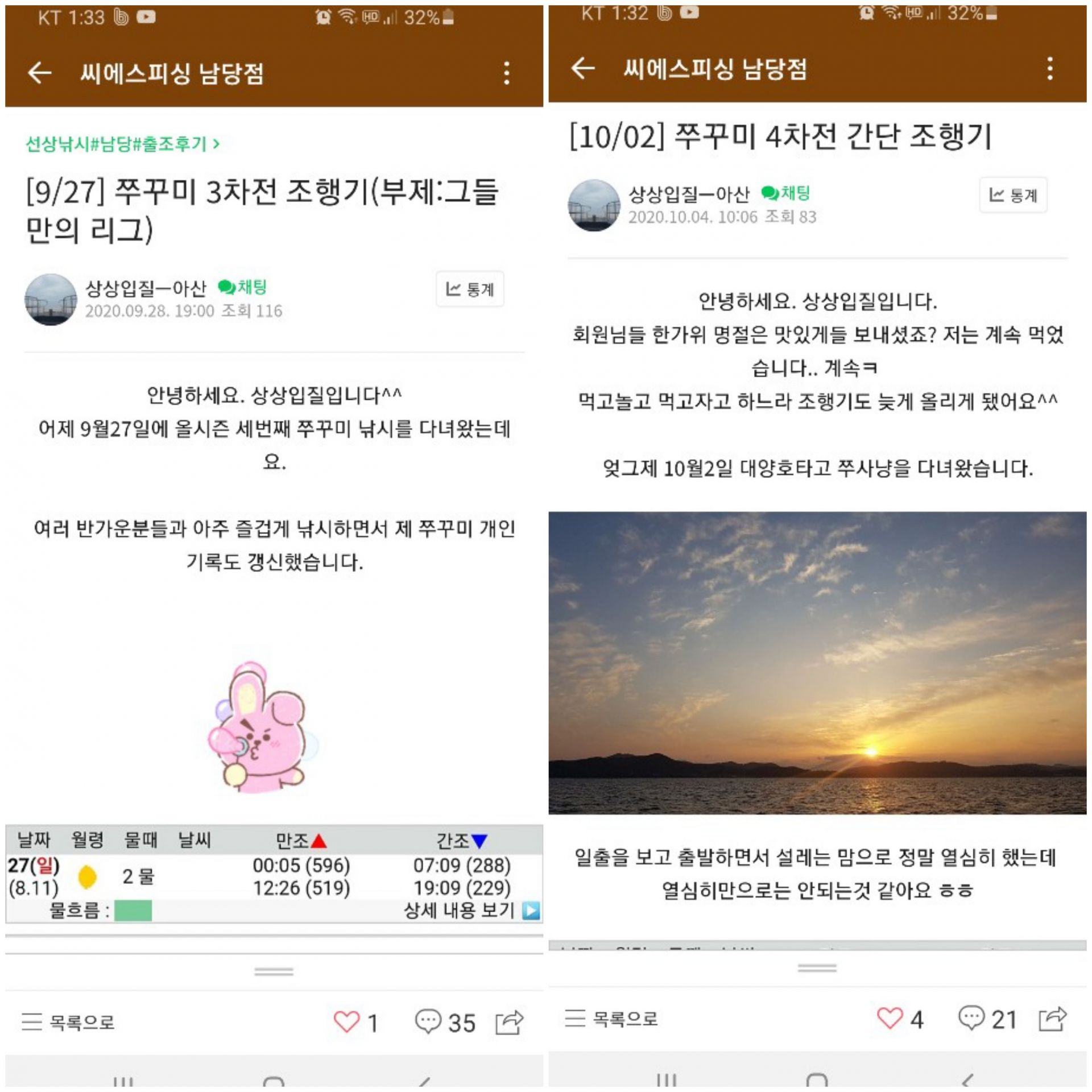 안녕하세요? 클럽씨피싱 남당댁입니다.