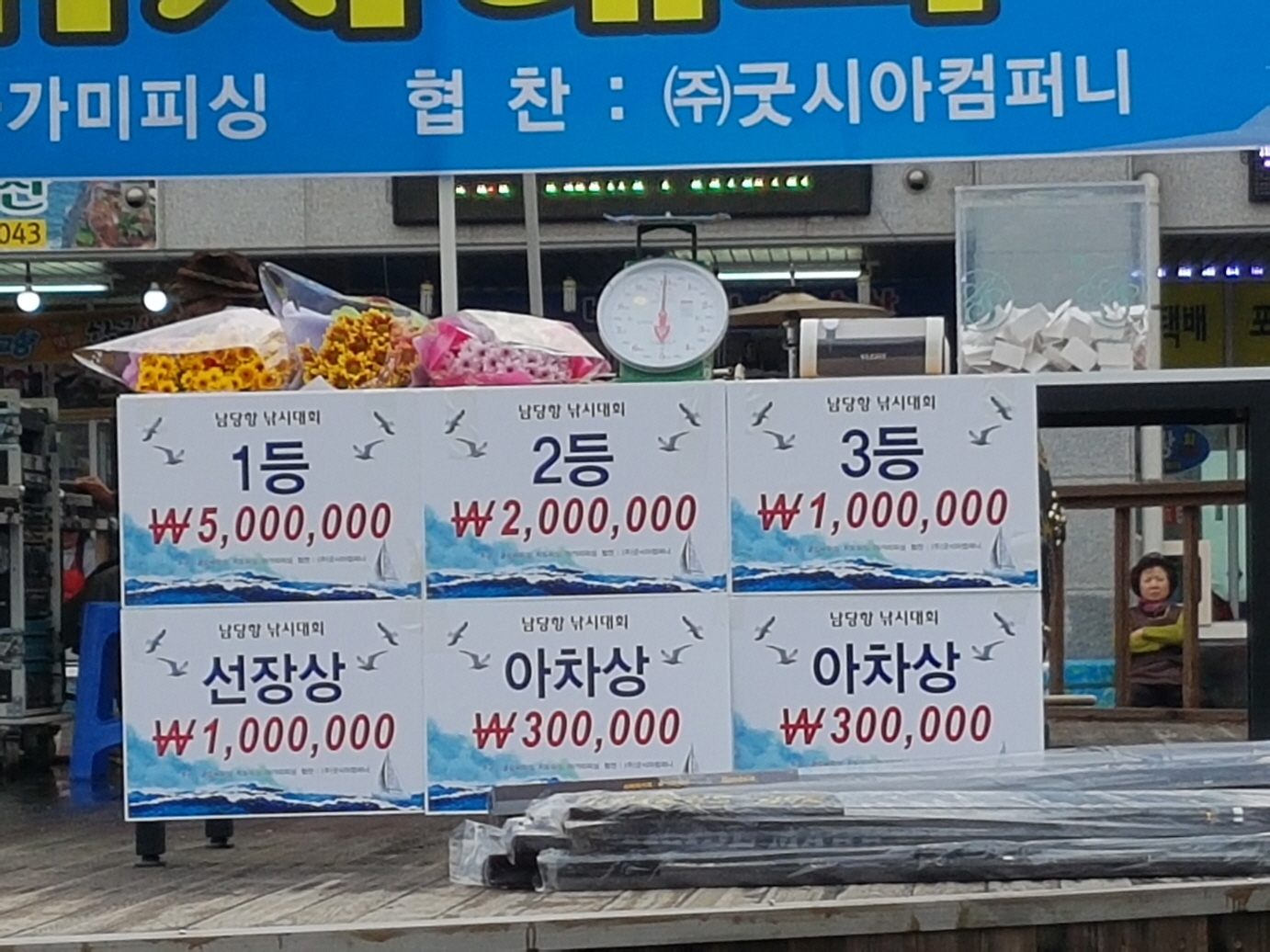 그외 행운상추첨으로 낚시대 약90개 당일 횟집이용권 5만원짜리 40장 무료승선권12장등을 나눠드렸습니다.