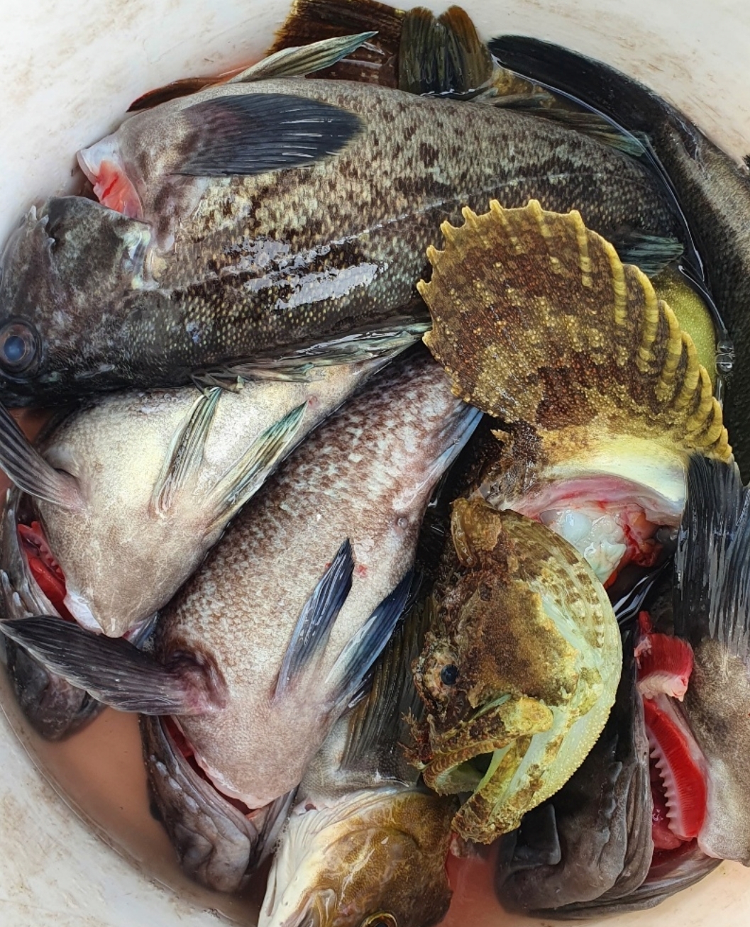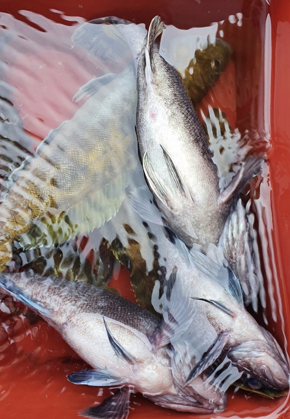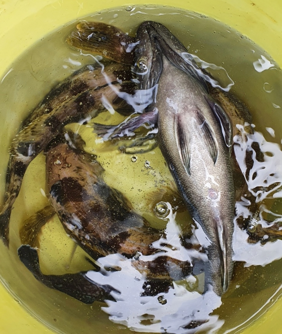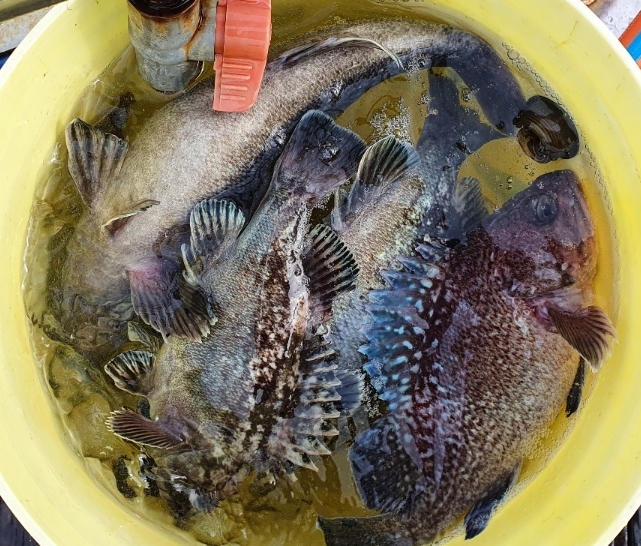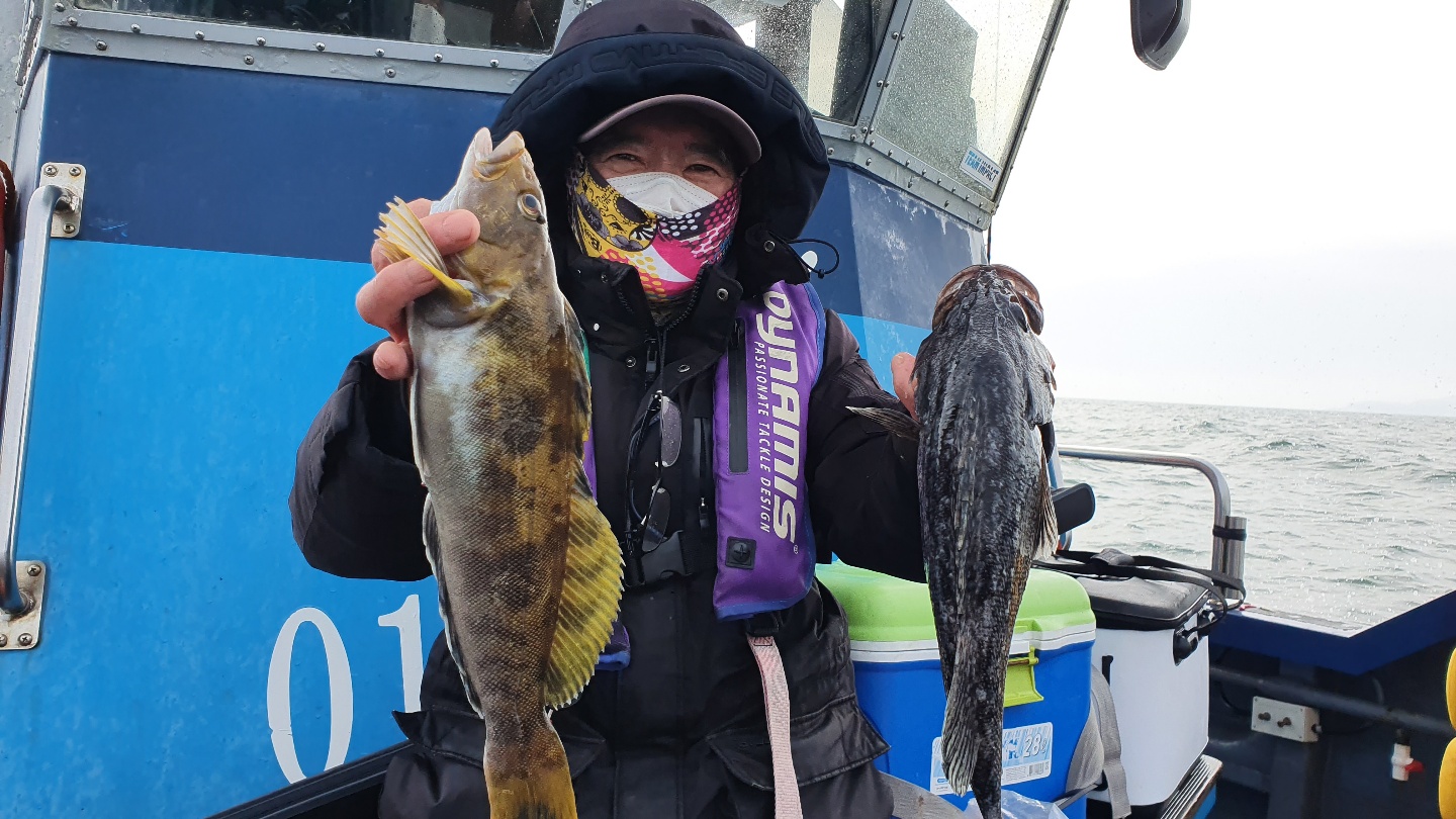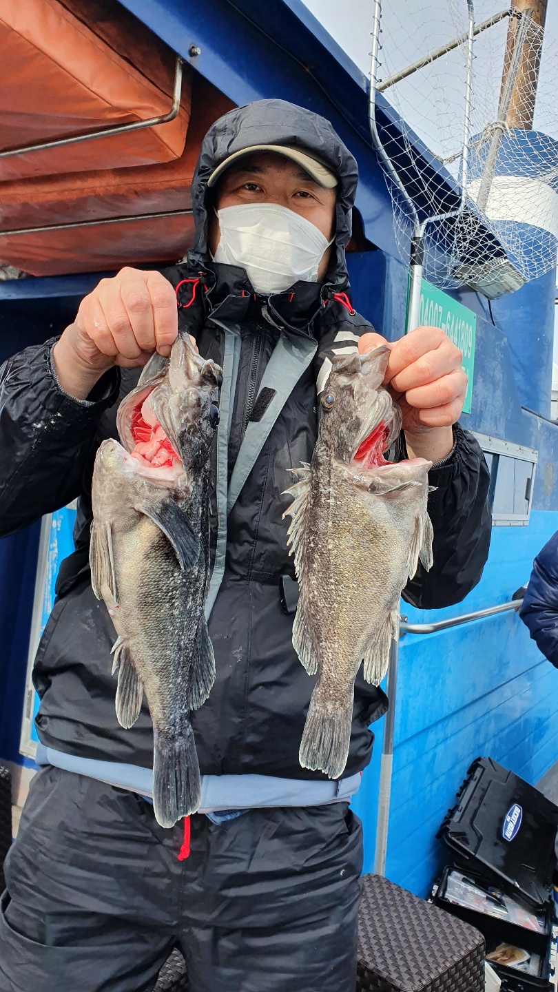 다섯~여섯 마리 정도 씩은 나와주내요~ 그렇게 한참 잡고 있는데 점심때쯤  바람이 터지고 너울도 커지고...ㅠ 손님들에 안전을 위해 다시 다시 한시간 이동 요번에는 우럭이 아닌 놀래미 4짜가 우당탕 우당탕...ㅋ 그렇게 즐겁게 낚시를 하고 입항했내요~오늘 오신 모든 조사님들 넘 감사드리고 너울에 바람에 고생 많이 하셨습니다~즐거운 저녁시간 되세요~