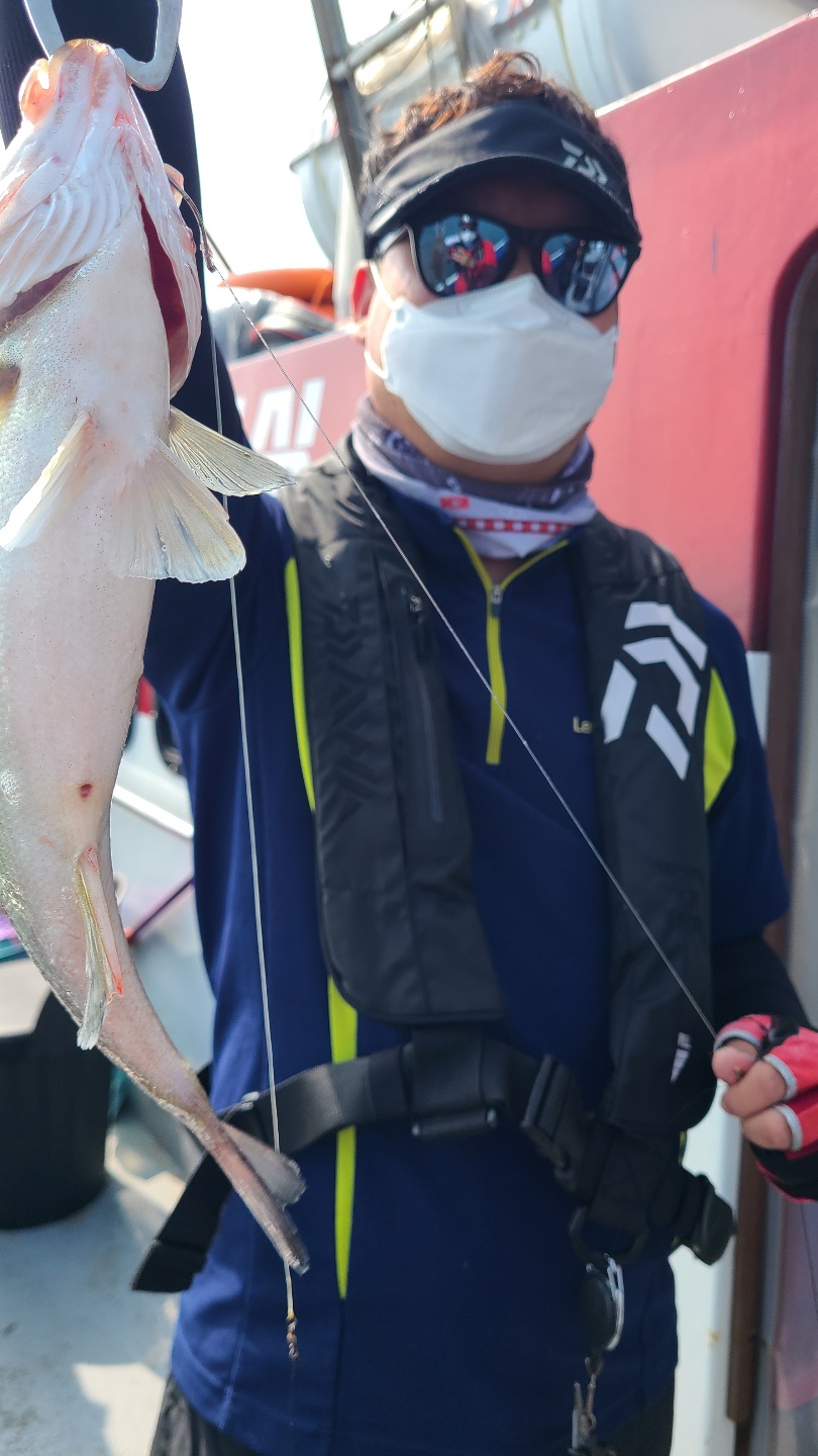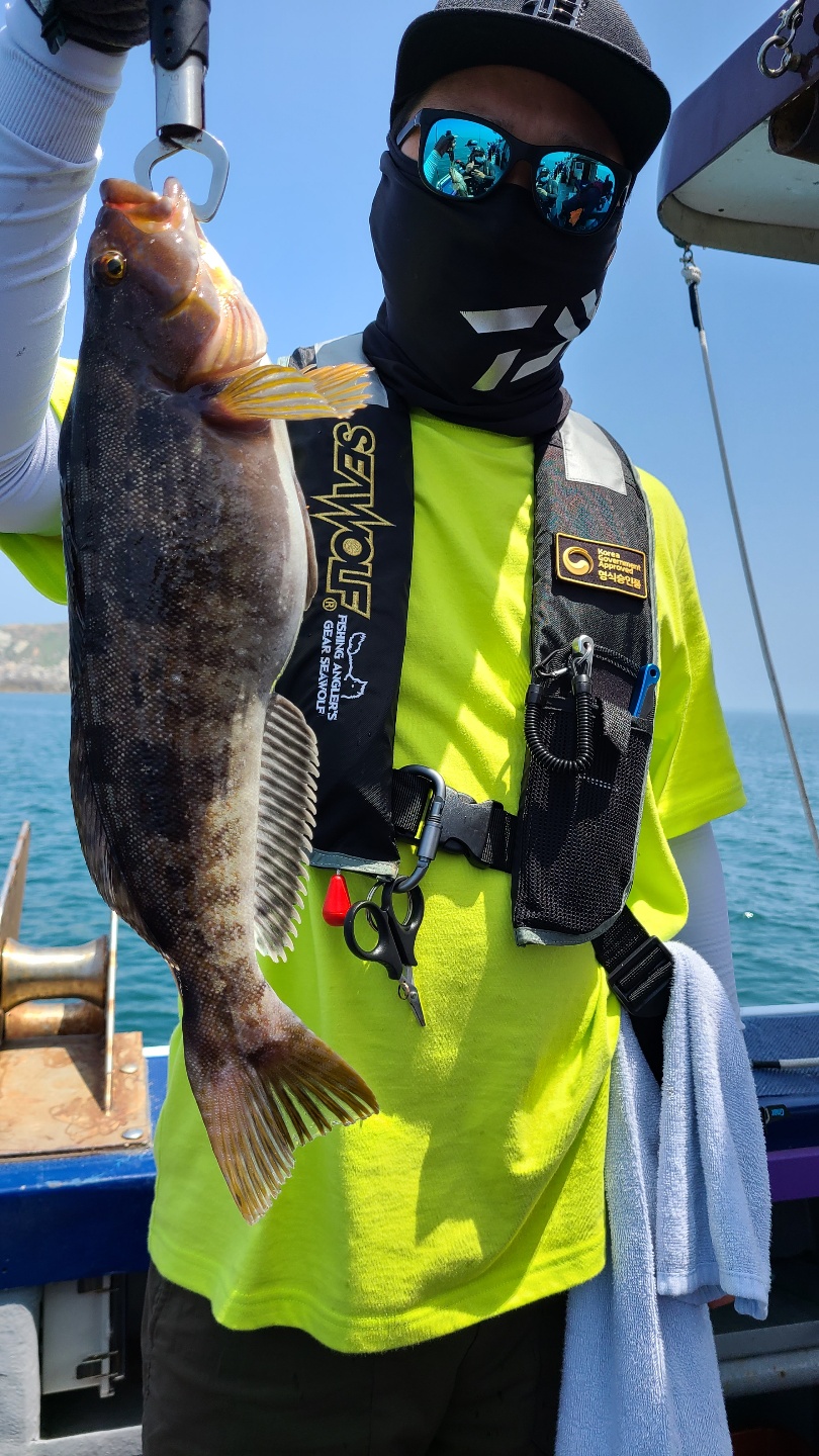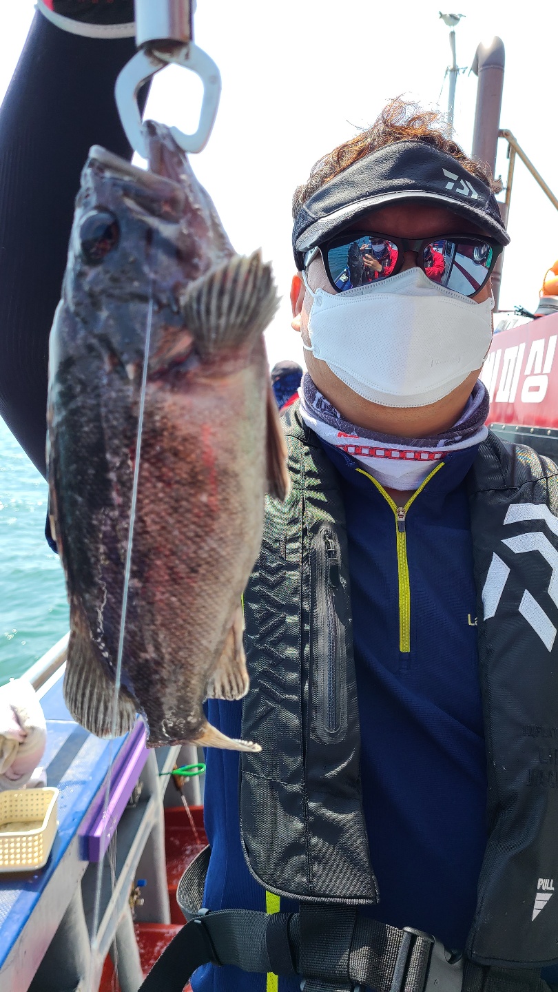 아침부터 너울로 인해 고생했습니다.4분 모시고 나가 2마리 잡았습니다.선수분들은 못잡으시고 첨 오신분이 두마리 잡아갔네요.
