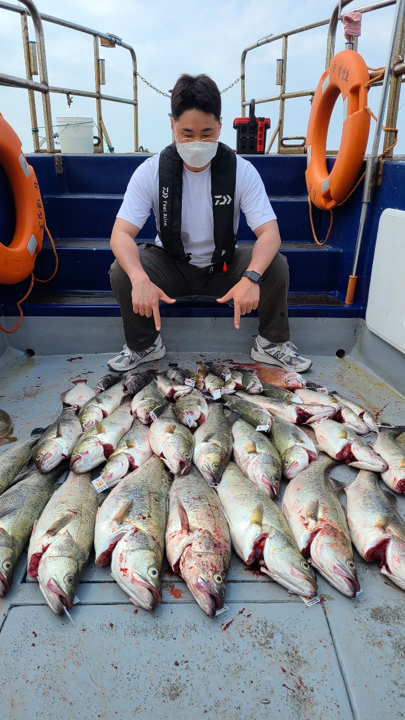 금일 물때 1물.조사님 16분 모시고 백조기 탐사 하였습니다.처음 백조기 낚시를 하셔서 오전 내내 고생하시다가 오후에 백조기 낚시라는 걸 아시고 다음에 또 오신다는 손님이 많으시더라구요.17일 탐사보다 조금 바람이 남풍으로 인해 너울도 조금있었고 어제 비도 와서 수온이 떨어져 안좋았지만 여러가지 어종이 나왔고 민어도 한마리 나와줘서 손님들을 즐거운 낚시였습니다.16분 조사님들 드실만큼 잡으신것 같아 좋았고 수온이 점점 오르면 백조기가 많이 나올 것 같습니다.오늘하루 고생 많이 하셨습니다.