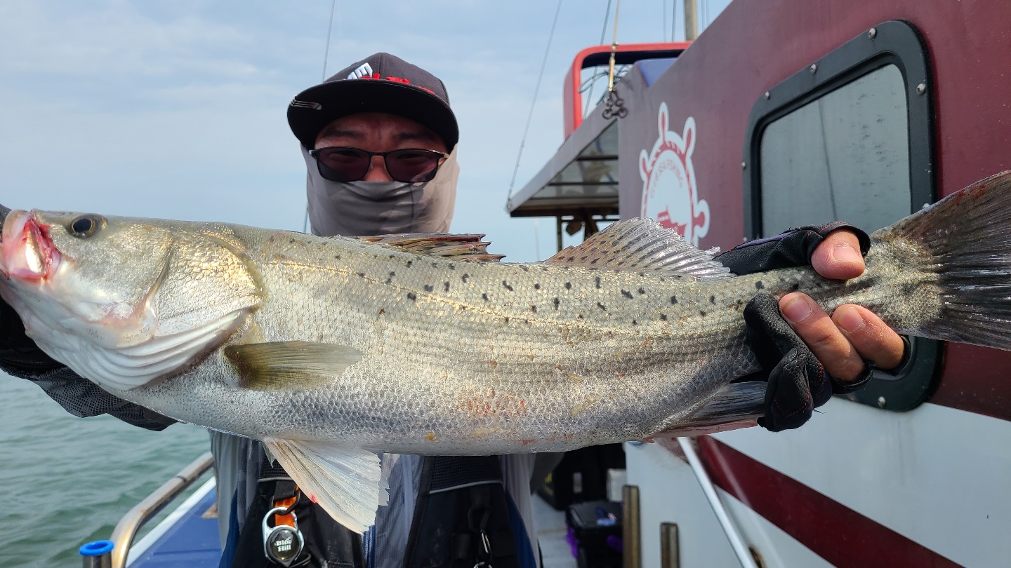 안녕하세요~ 뉴대성호 입니다.오늘 기상악화가 예상되는 지라내만에서 농어만 해보기로 했는데 많진 않지만 농어 손맛 보신 분들은 재미나셨을 것 같습니다.생각보다 일찍 바람이 터져 낚시하는데 많이 힘드셨을 것이라 생각됩니다.모든 분께 농어 손맛을 못드려 송구하고'3분이 동시히트하신 것만 다 올렸어도...' 하는 아쉬움이 남습니다. 방생포함 15마리네요...
