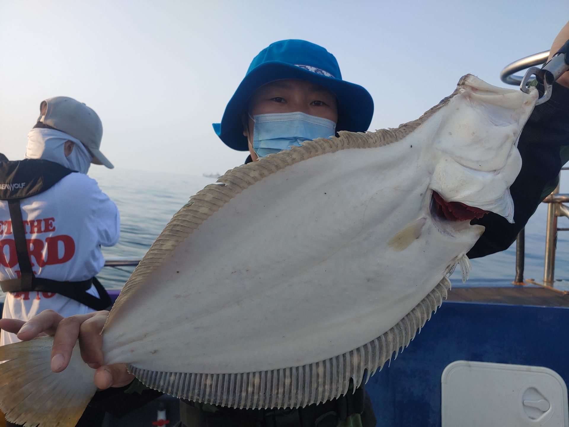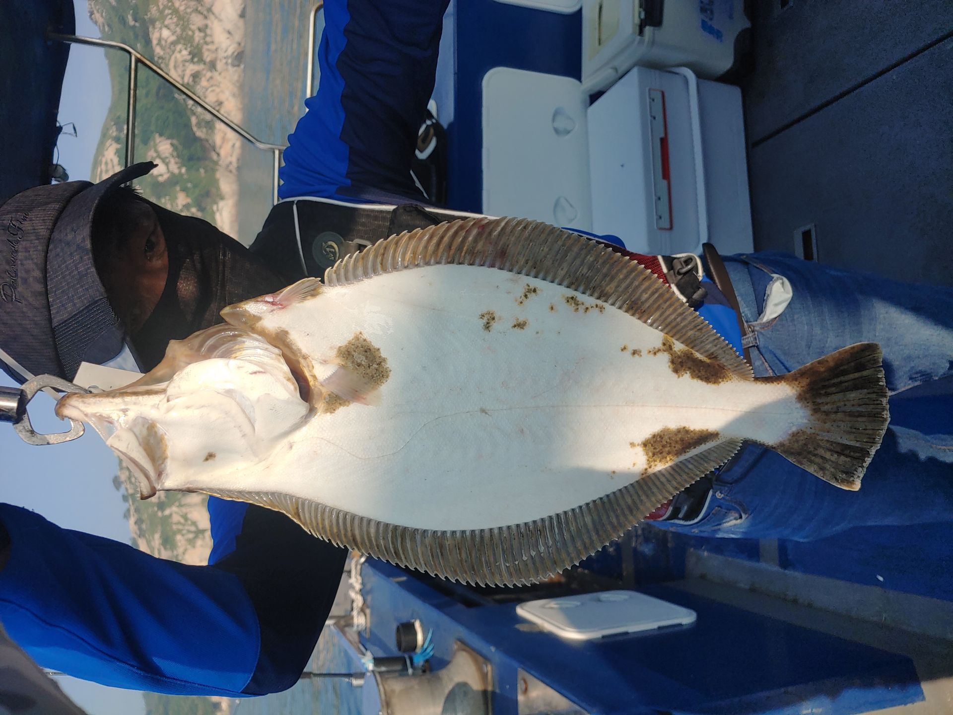 오늘 손님들도 초보분이 꽤 있으시내요..포인트 도착후 제가 직접 교육해드리고 일일 사무장해준 동생이 채비와 웜 다시해드리고 내렸는데 바로 히트~~5짜후반 광어가~싱글벌글