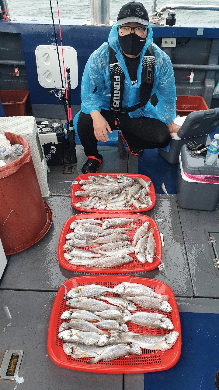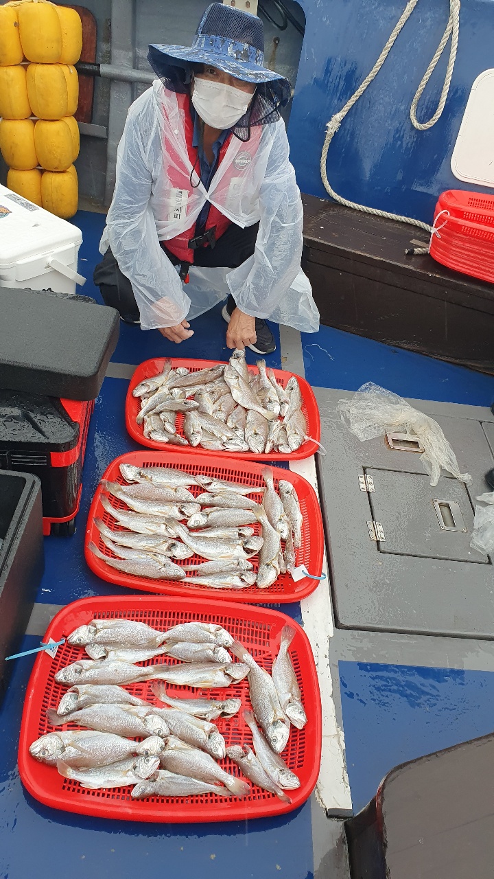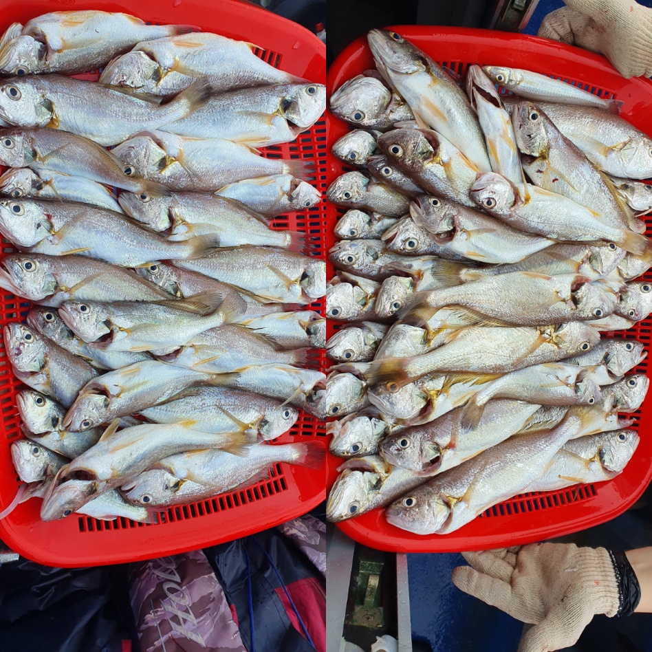 안녕하세요. 뉴대성호입니다.오늘은 백조기들이 사이즈가 실하게 나와주었습니다.그냥그냥 나와주다가 뜸하다가 또 나와주고...이렇게 하루종일 하니 장원이 80여수로 마무리 할 수 있었습니다.저를 믿고 승선해 주신 조사님들께 다시 한 번 감사드립니다^^