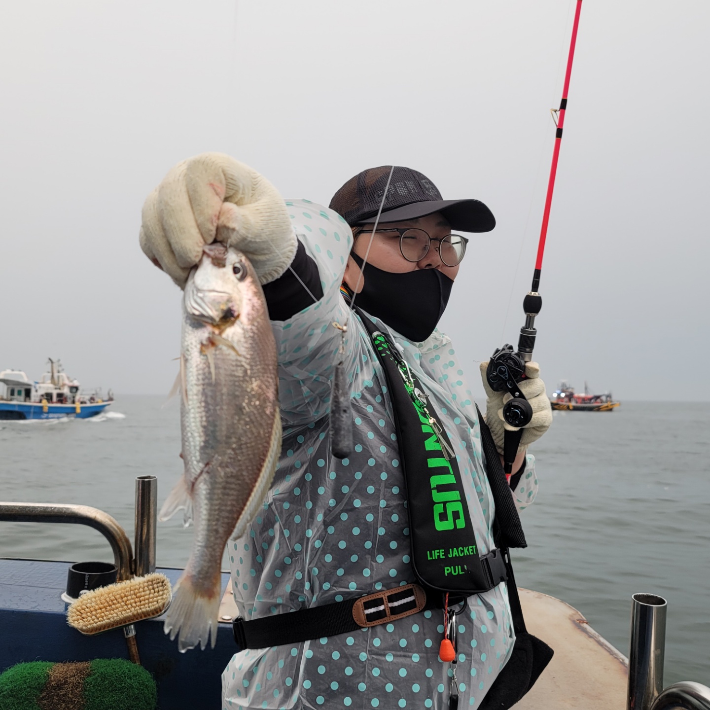 오늘은 낚시 하기 좋은 날이었을까요.. 아님 힘든 날이었을까요..ㅎ일단 비가 하루종일 왔습니다. 그래서 일단 더위는 가라~~^^ 근데 가끔 바람도 함께 불어주어서 원하는 데로 배 방향이 흐르지 않아서 살짝 고생했습니다.ㅎ그리고 14분중... 구명조끼가 11개 대여..ㅎㅎ초보조사님들이 좀 많이 계셔서 줄 잡기도 힘들었네요..ㅠ작년부터 쭈꾸미 낚시도 기술 낚시로 승격... 연구해야 되는 낚시였다고 말씀드렸는데 올해부터는 백조기도 그런가 봅니다.총평을 하자면... 일단 잘 잡으시는 분은 덥지않은 시원한 날씨에 그래도 씨알 큰 넘으로 잡을 만큼 잡으셨는데초보조사님들은 비바람에 입질만 많고 안잡히는 조금 힘든 하루였던 거 같네요..ㅠ오늘 굳은 날씨에 조사님들 고생많으셨구여...오늘도 감사한 하루였습니다.