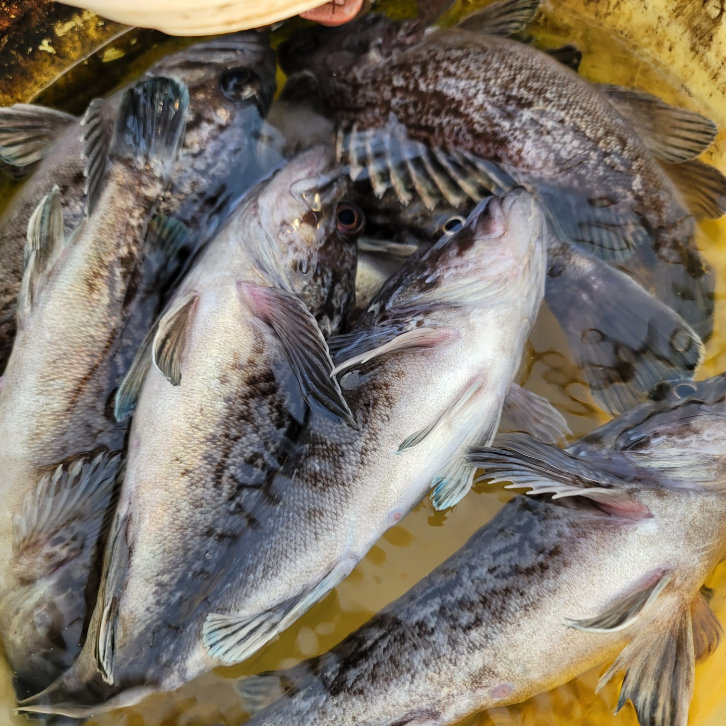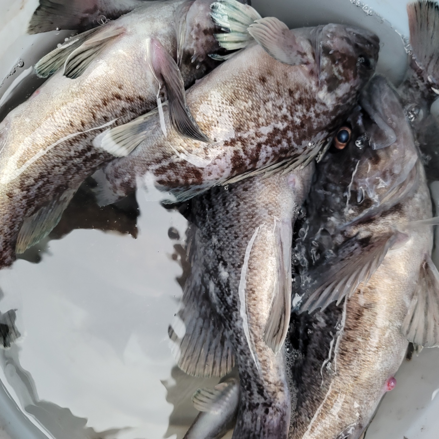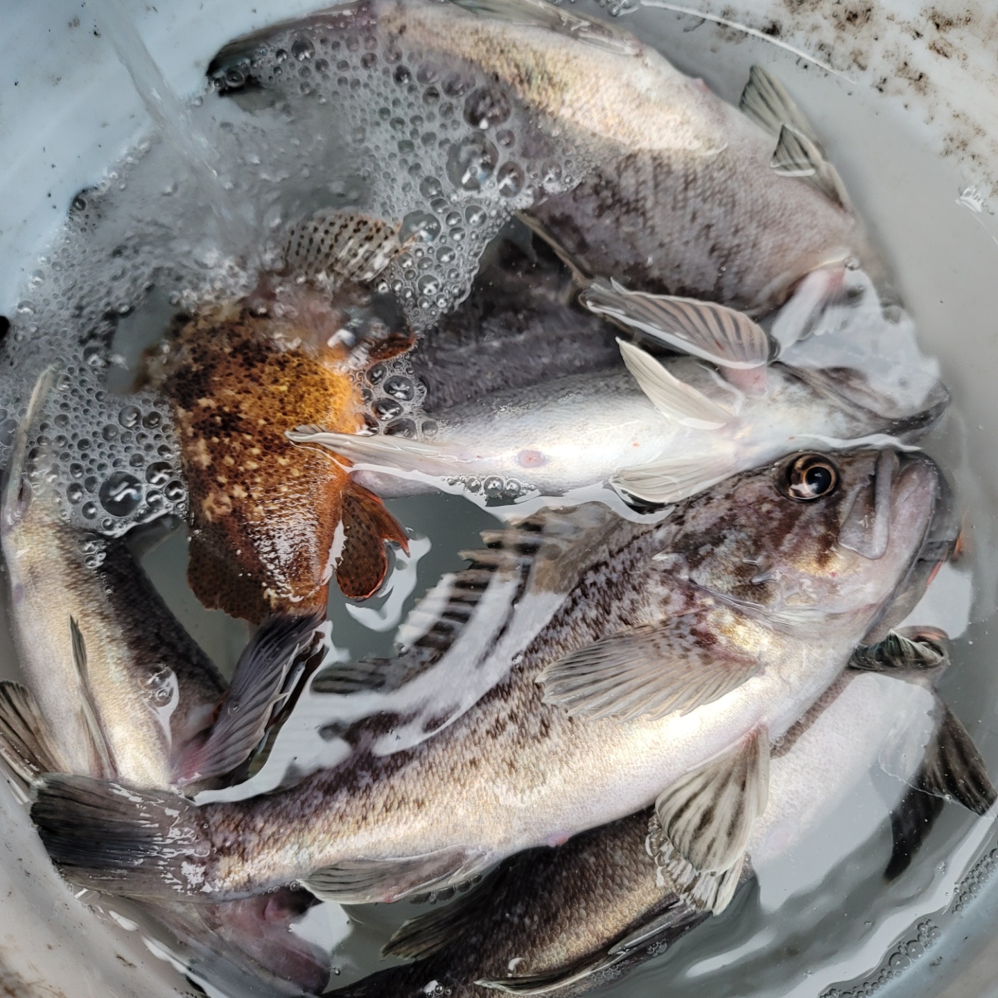 오늘도 대성호는 우리 손님들과 잼잼나 놀다왔내요 첫 포인트를 멀리 잡고 출발~~~가는 도중 첫 포인트 지역 선장님께전화가 오내요 오지마오지마....ㅠ 나오라는 광어는 안나오고 우럭만 나온다내요...ㅠ 첫포인트를 버리고 두번째 포인트로 이동 삑~ 아...간질나 죽겠습니다..,한번 흘릴때마다 한마리 한마리 어쩌다 두마리 이러지도 저러지도 못하고 있는 상황에서 선장님들께 전화가 오기 시작하는데.... 이곳이 제일 잘나온다는...ㅠ 그래서 점심 먹기전까지 열심히 줍줍~밥먹고 한참 뜸하다 물이가기 시작하니 다시 한마리두마리~열심히 줍고 다녔내요 잡아 올린건 50여마리 올라왔는데 킵한건 40수 정도 한거 같습니다~ 많이 잡으신분은 5광4광3광 아쉽게 광어는 한마리도 못잡으신분이계셔 많이 죄송했내요...ㅠ조황: 6짜 2마리 5짜 15마리 나머지는 4짜입니다..         우럭 개인물통에 가득~^^예전에는 4짜 이하 잡으면 포인트를 이동하여 방생또는 항에 들어와서 방생했지만 이제는 손님께서 잡은 즉시 방류합니다