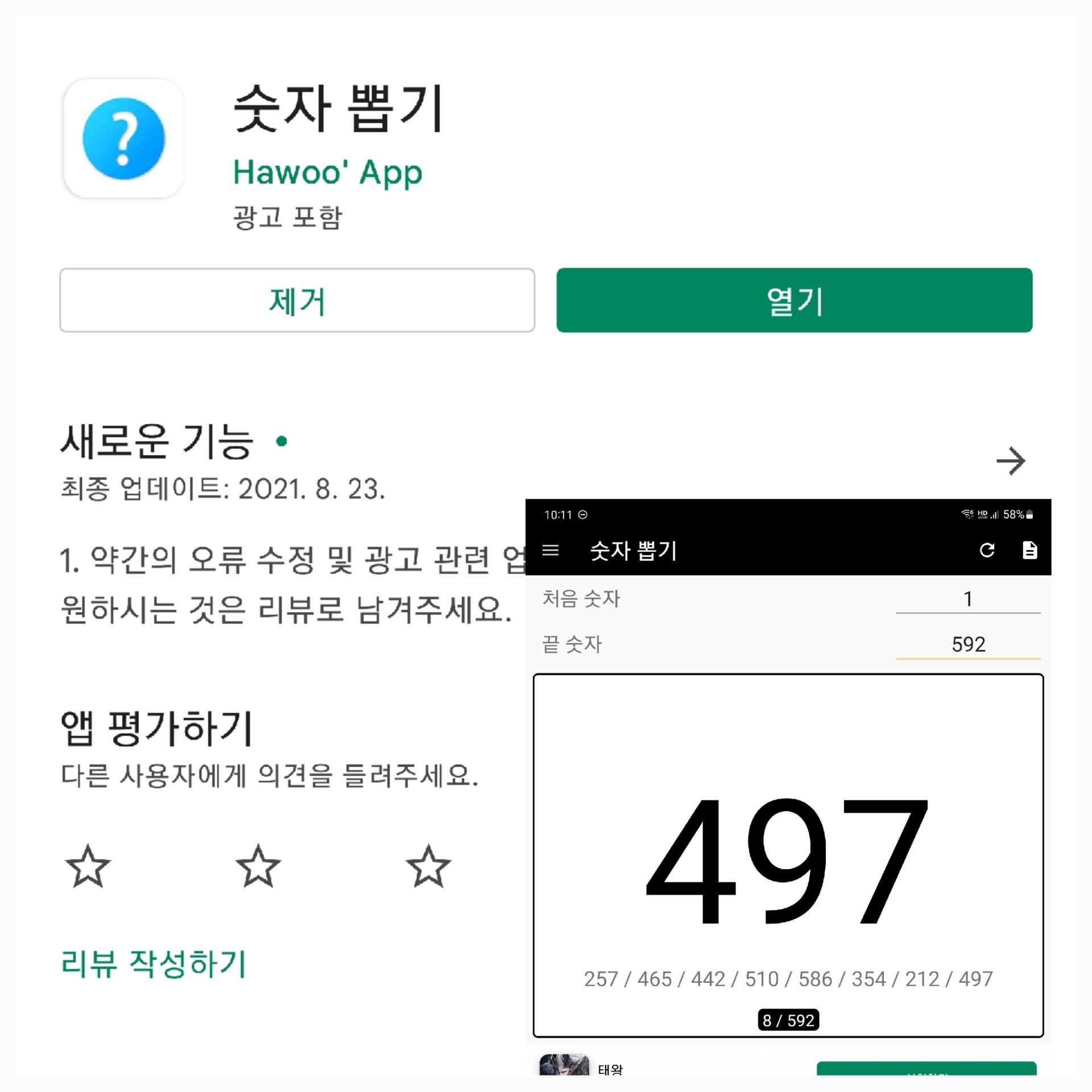 ▶ 아래 뽑기 어플로 진행됩니다.