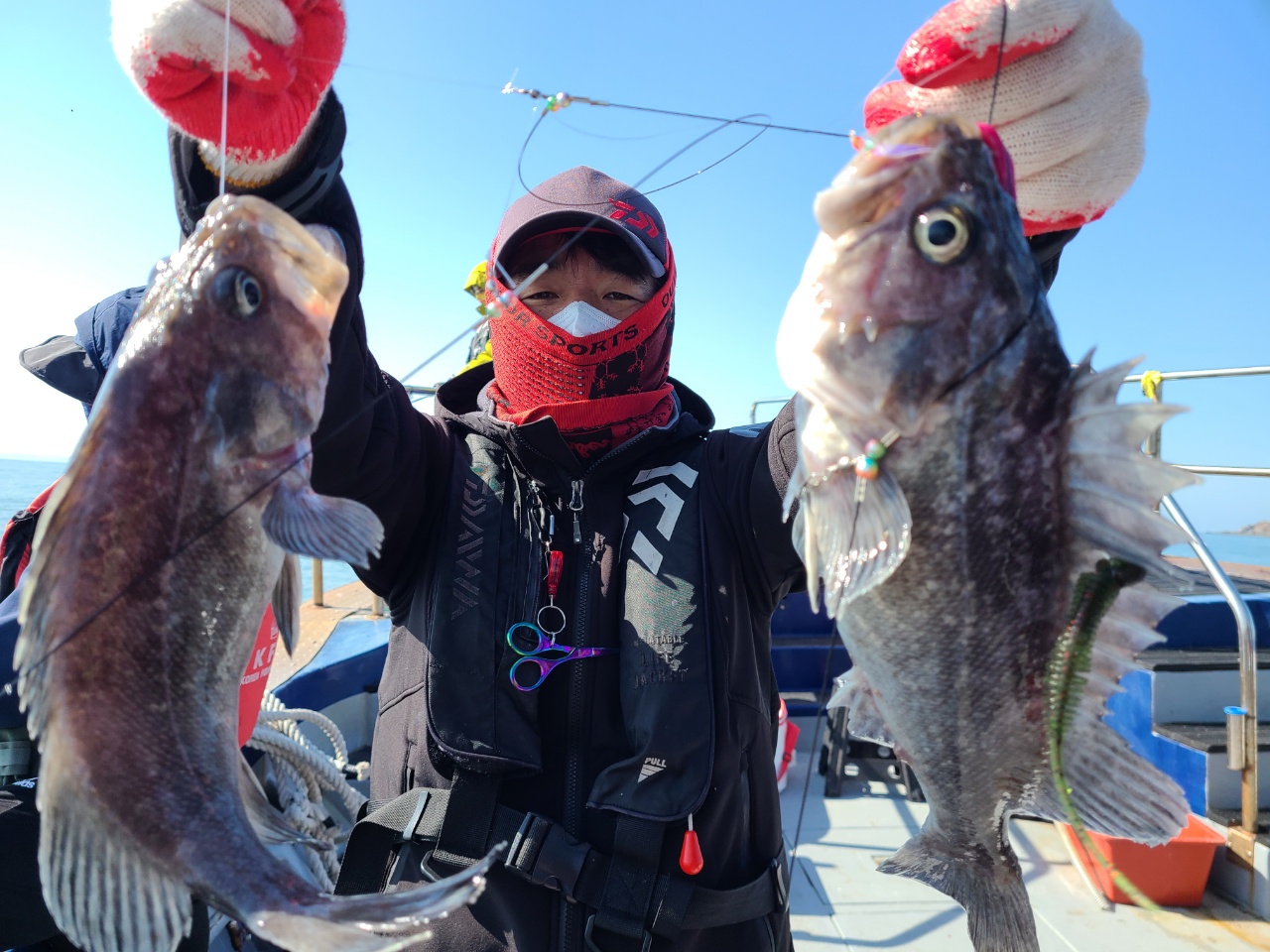 오늘도 대성호는 우리 손님들과 잘 놀다왔네요 오랜만에 꼬리달린거 잡으러 다녀왔네요~기상예보와는 전혀 다르게 바람도 많이불고 너울 때문에 포인트 진입도 어렵고....ㅠ손바닥 만한거 잡자니 자존심이 상하고...ㅠ그래서 자존심 지키고 큰놈 잡으러 여기저기 많이 돌아다녔네요~~~~오늘에 최대어 김♡권님 축하드립니다싸이즈는 사진으로 감상하시죠~~~인생 우럭잡았다고 좋아하시네요~~~대성호는 1월~~~2월~~~3월~~~쭉~~~ 기상만 허락한다면 5인이상 무조건출조합니다 예약자가 없다고 망설이지 마시고 예약해주세요~~남당댁과 제가 어떻게든 5인이상만들겠습니다~~~~
