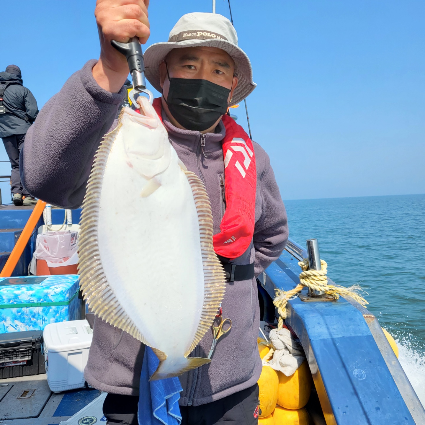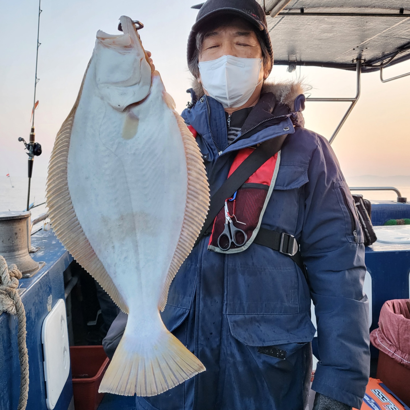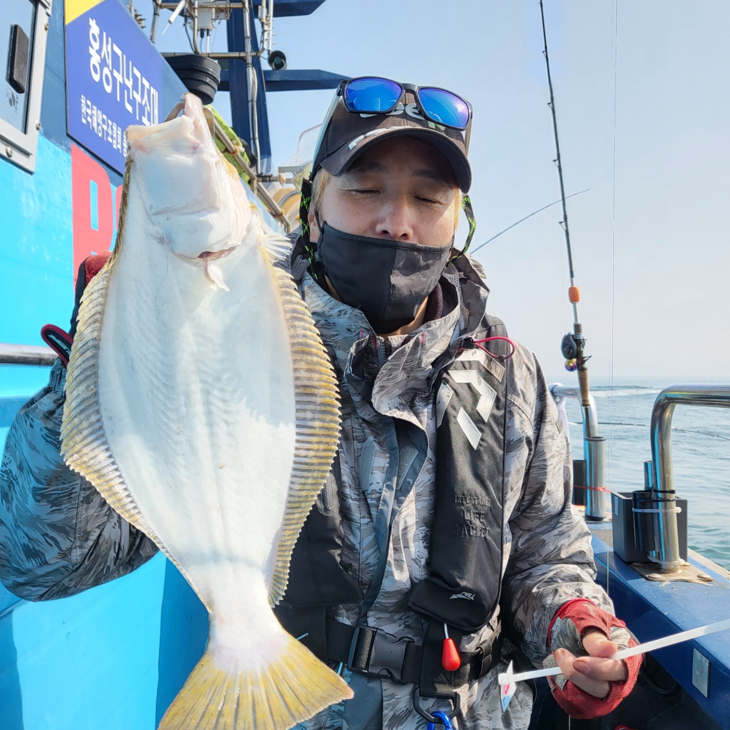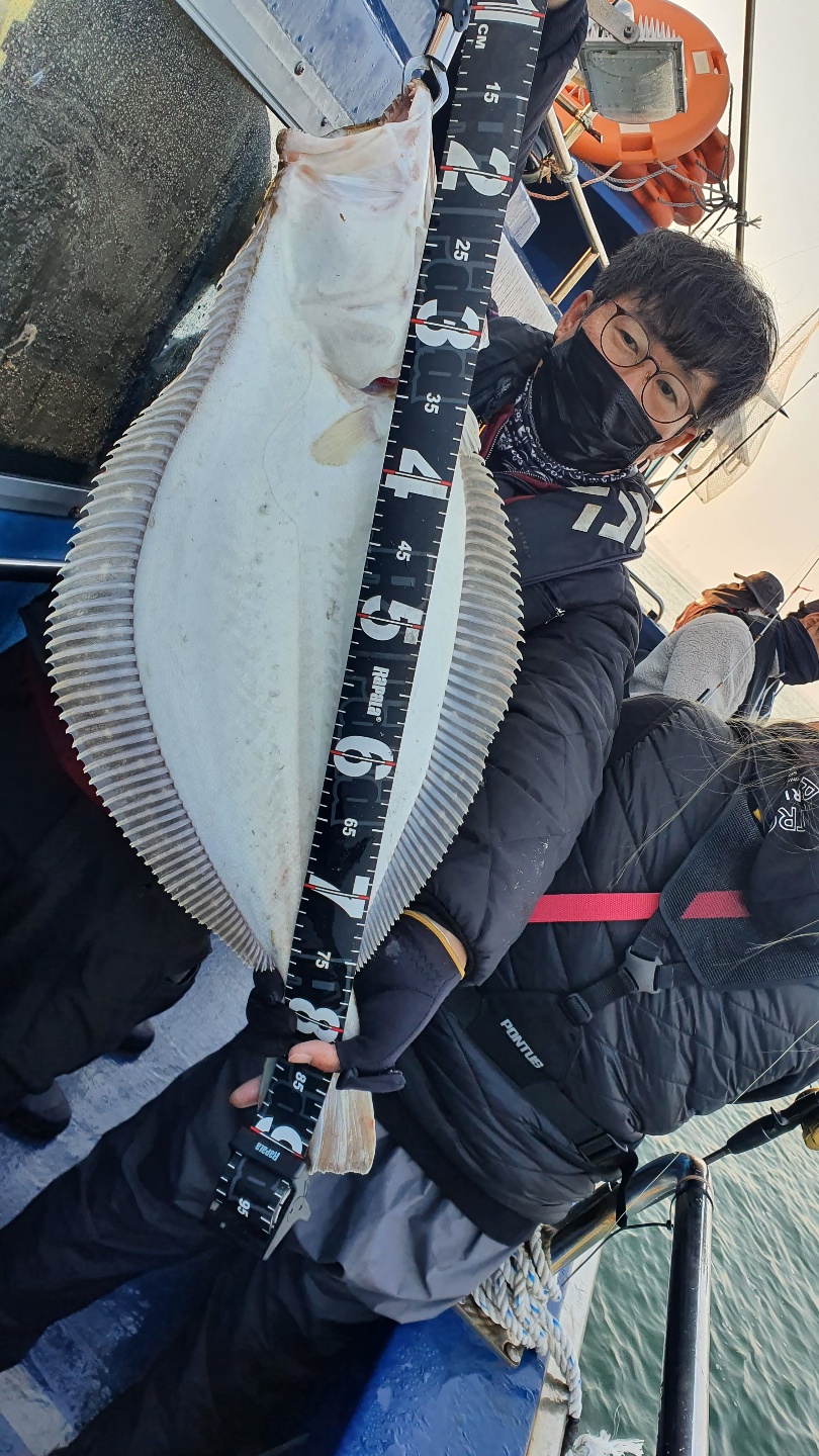 우현 히트~~대물임을 인지하고 선장실에서 나가는 순간 팅...ㅠ 두번째 광어는 6짜 세번째 광어는 5짜...