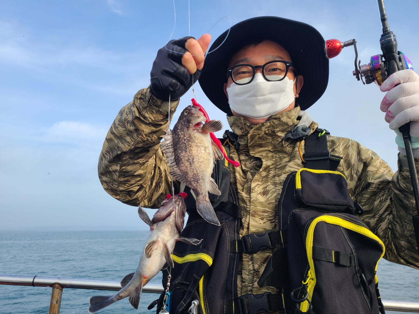 역시나 바다는 알 수가 없네요..어제와 다른 패턴..ㅋ하루종일 여기저기 돌아다니면서 포인트포인트 찍고 다녔네요...대물포인트도 있고 가끔 쏟아지는 포인트도 있고... 위안이라면 그나마 사이즈가 많이 커졌다고 해야하나...ㅎ어제와 마찬가지로 오후에 찬바람터지면서 힘들었다는..ㅠ그리고 활성도도 좋아져서 웜에도 큰우럭들이 반응을 하기 시작하네요...다음에 오실땐 다운샷채비 준비하셔도 좋을 듯 합니다.