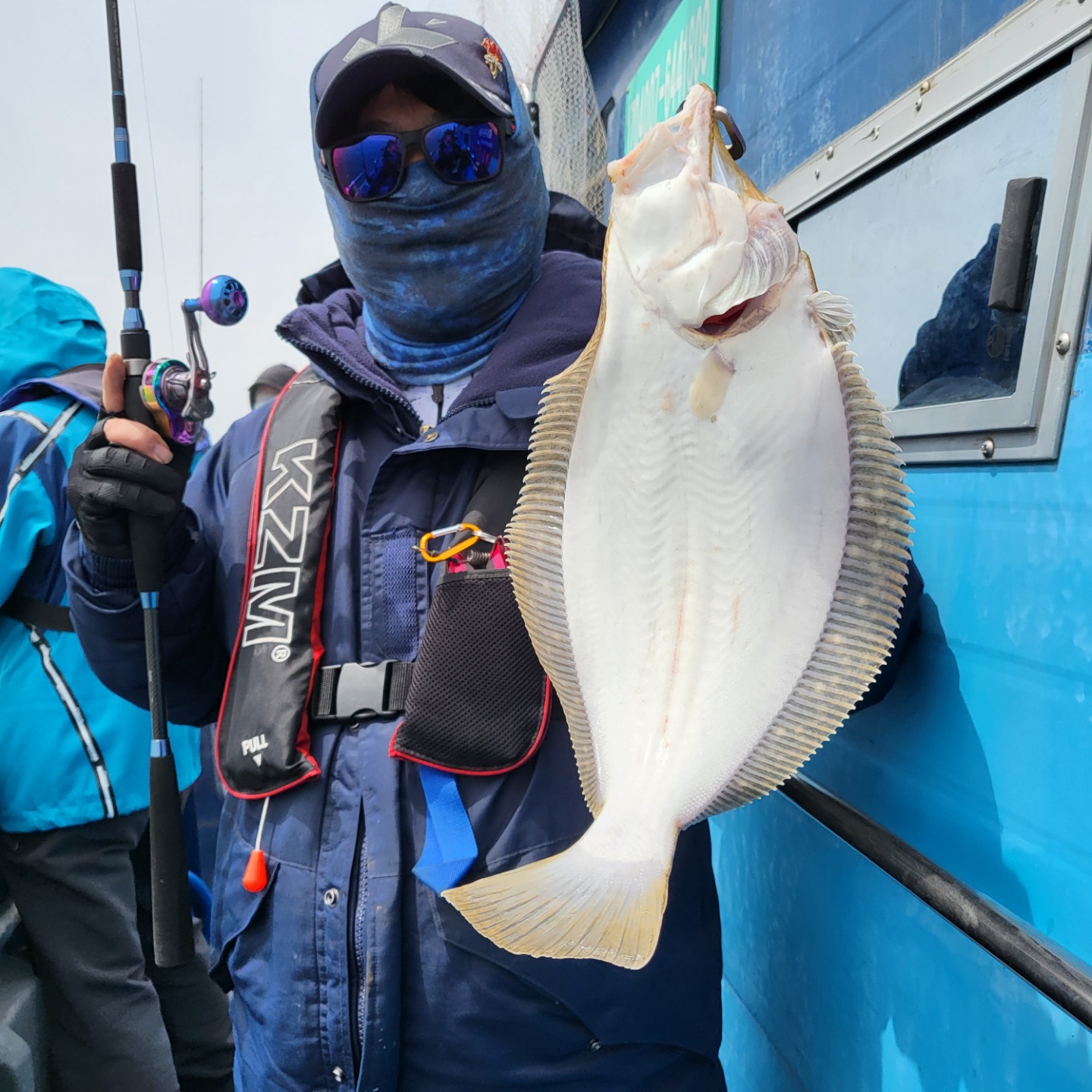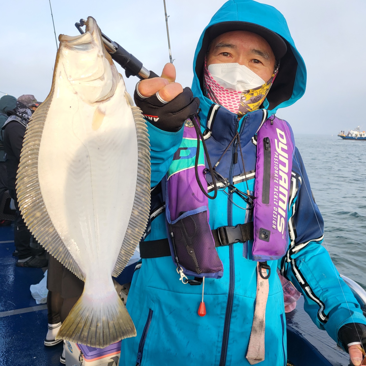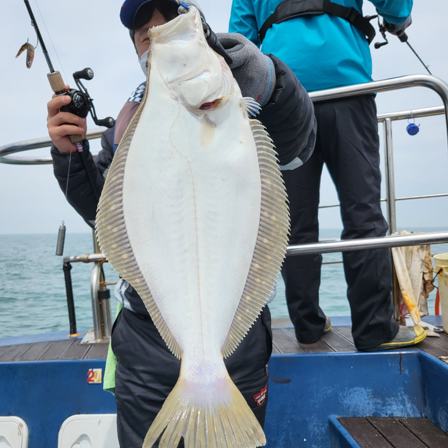 그래서 미련없이 첫 포인트 버리고 이동...삑~한마리 한마리...세번째 포인트로 이동~~한번 흘리는데 히트~~히트~~더블히트~~~잠깐 우당탕탕~~그 와중에 다운샷 잘하기로 유명하신 우리 클럽씨 단손님께서 대광어 랜딩도중 이놈에 광어가 얼마나큰지 드렉을 막~~그러더니 어장줄에 걸려...ㅠㅠㅠ
