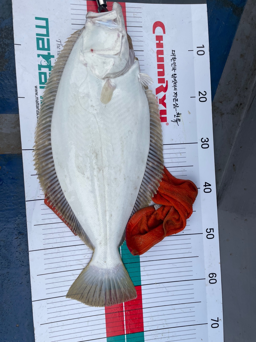 20분후 대광어 포인트로 출발~~포인트 도착 삑~ 얼마뒤 10번손님 히트~6짜광어~ 잠시후 4짜...ㅠ 잠시후 배들은 많아지고 여기 저기서 대광어가 올라왔다는 무전만 받고...더 열받는건 제가 흘리고 가는길에 뒤 따라오는 다른 배가 7짜를...ㅠ
