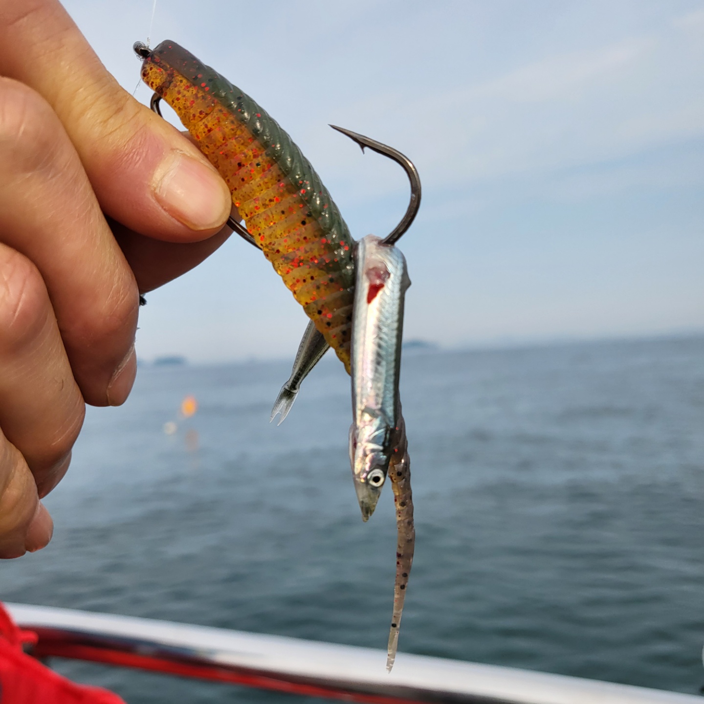날씨도 희리고 해무가 심하네요분위기가 농어는 안나올것같아서멀리가서 이것저것 잡히는데로 잡고농어대물도 잡고 들어왔습니다요즘 초보조사님들 즐거워하시니 참 다행입니다^^