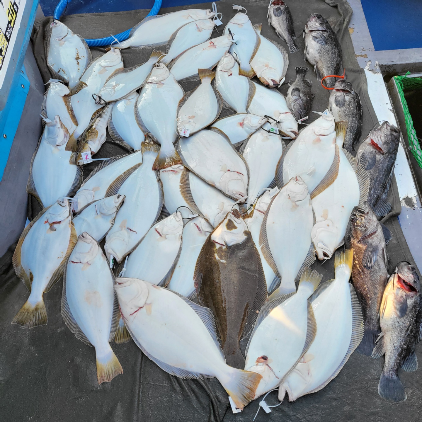 광어는 방생6섯수 빼고 이만큼 잡았네요~4짜이상 개우럭도 이만큼