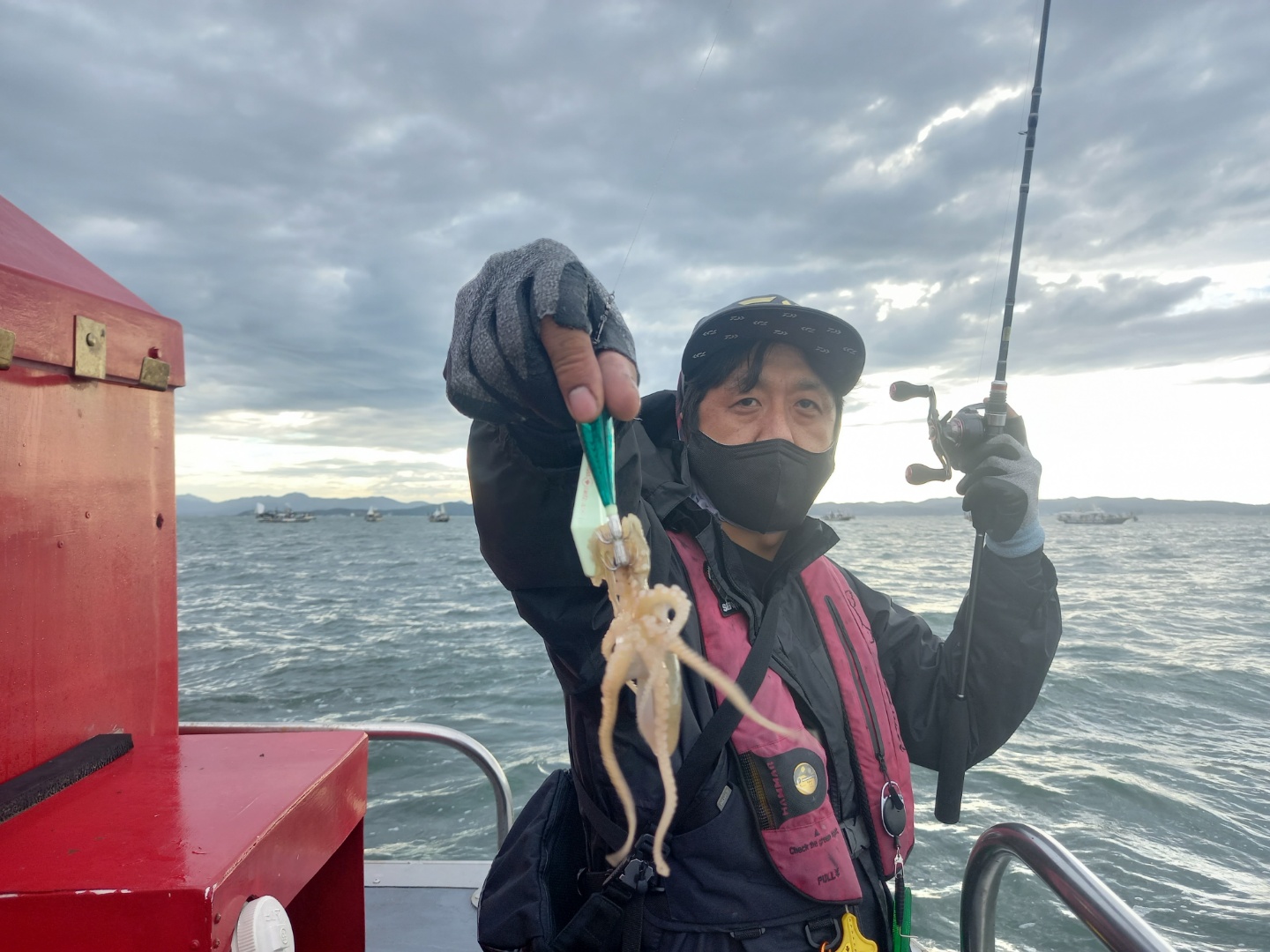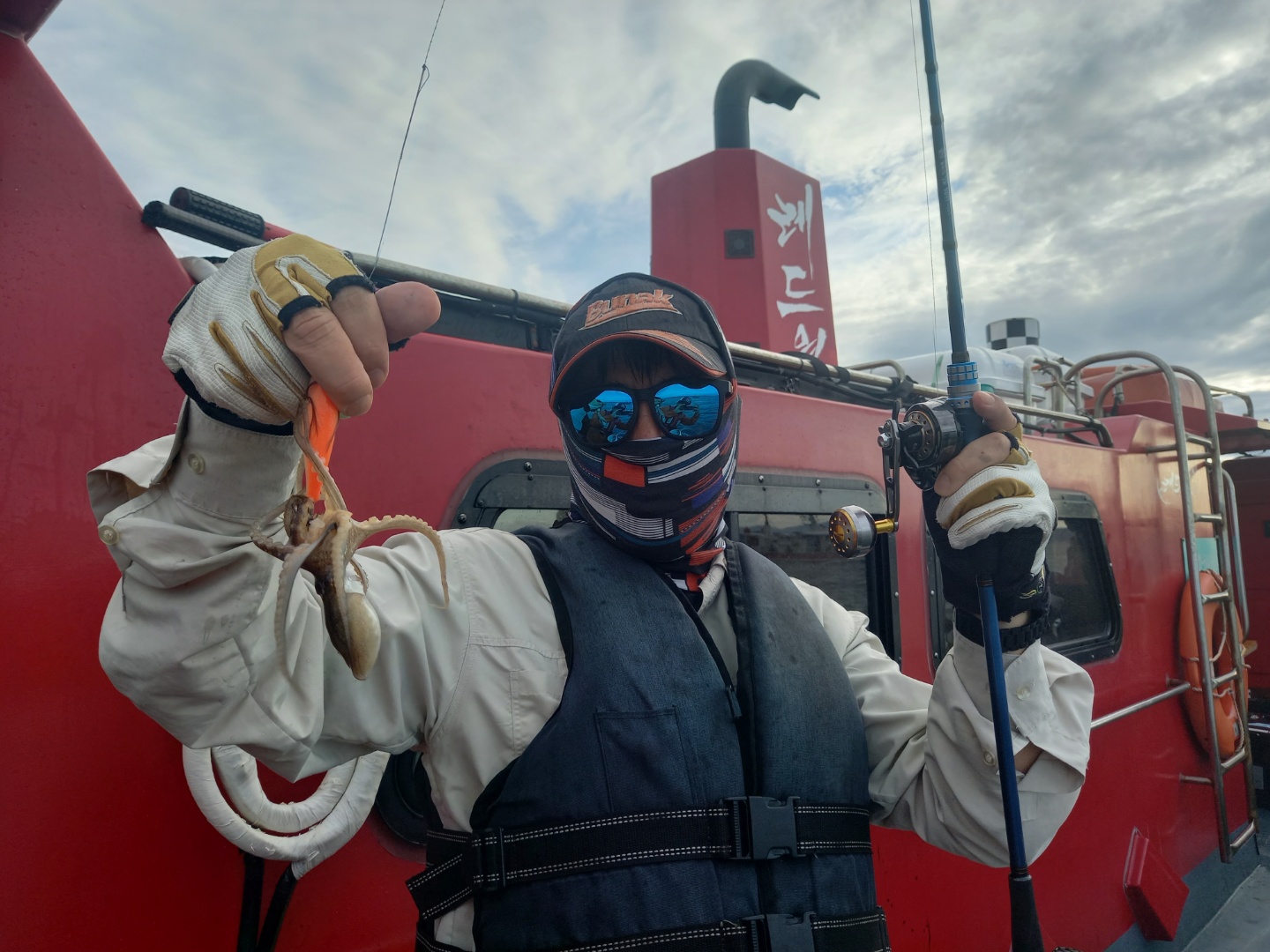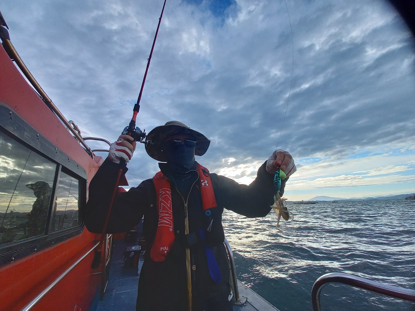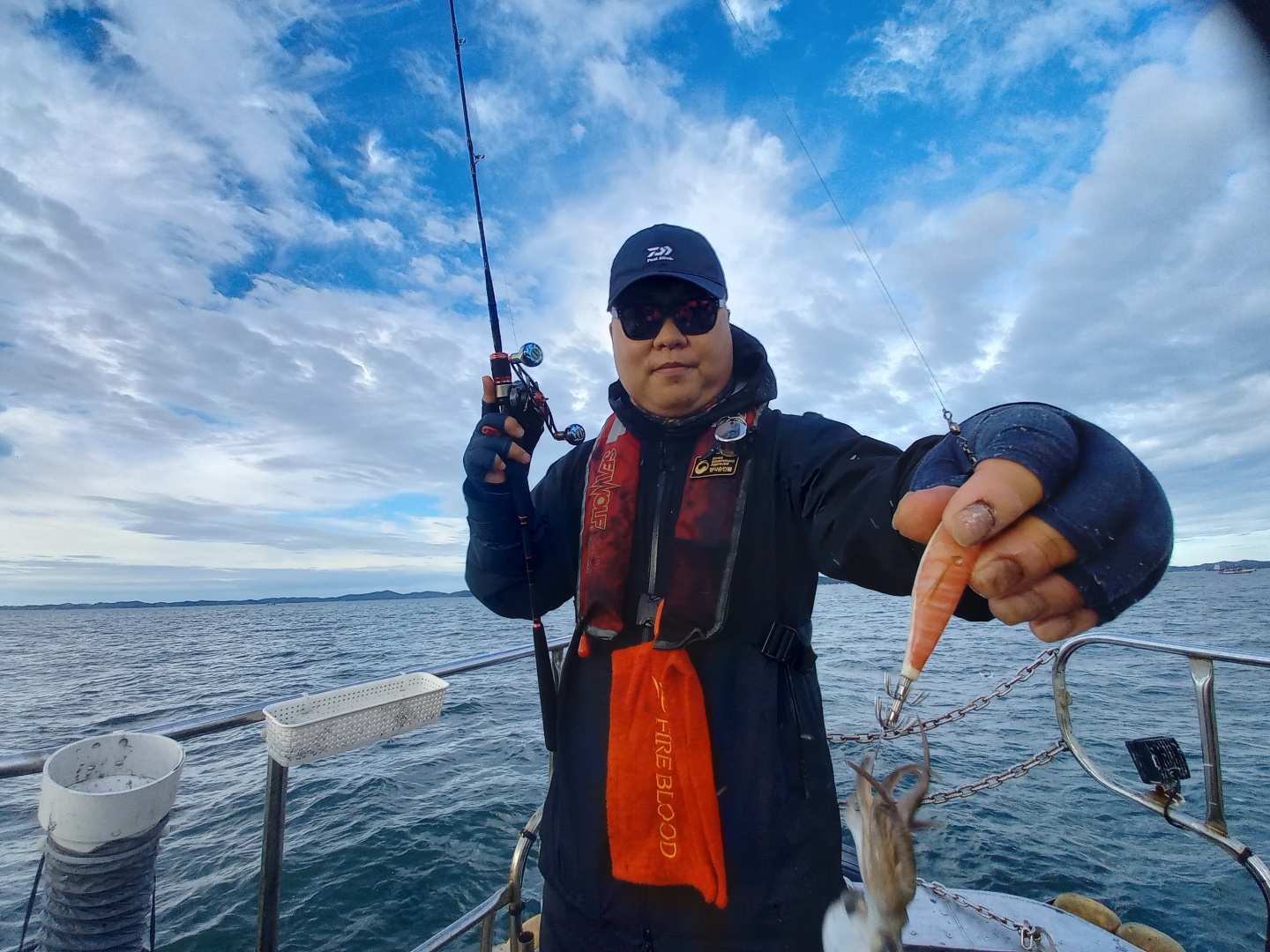 날씨가 생각보다 좋았습니다비가 가장 큰걱정이였지만 들어올때까지 촉촉하게 내려주었네요예보상은 2~3시까지 가능하였지만 태풍으로인해조기입항하였습니다 들어올무렵 참잘나왔는데 아쉽지만안전이 우선이니까요들어와서 식사대접하고 일부환불하고 들어왔습니다잘잡으신분은 100수오버로 나쁘지않았습니다태풍이지나가면 잘나올것같습니다^^