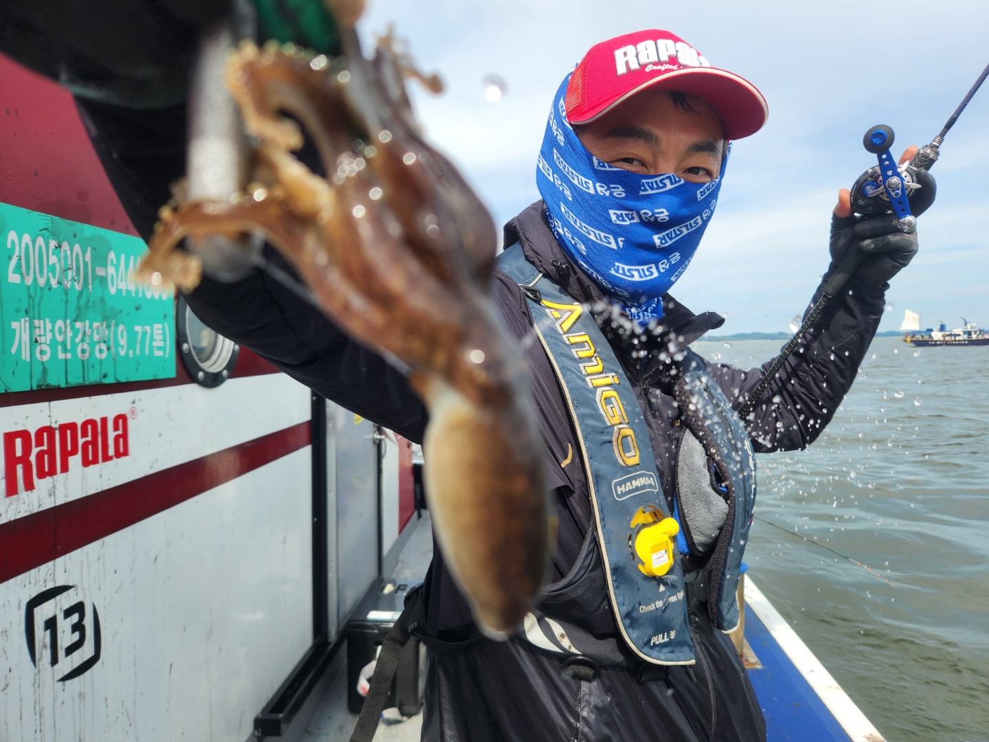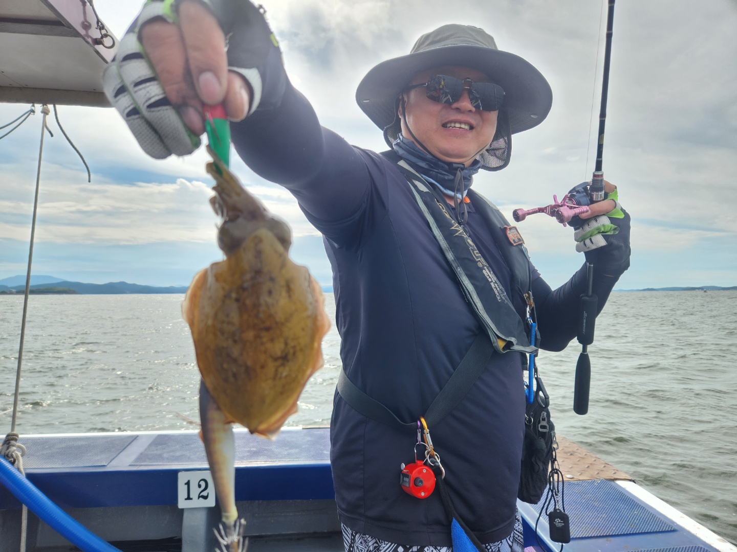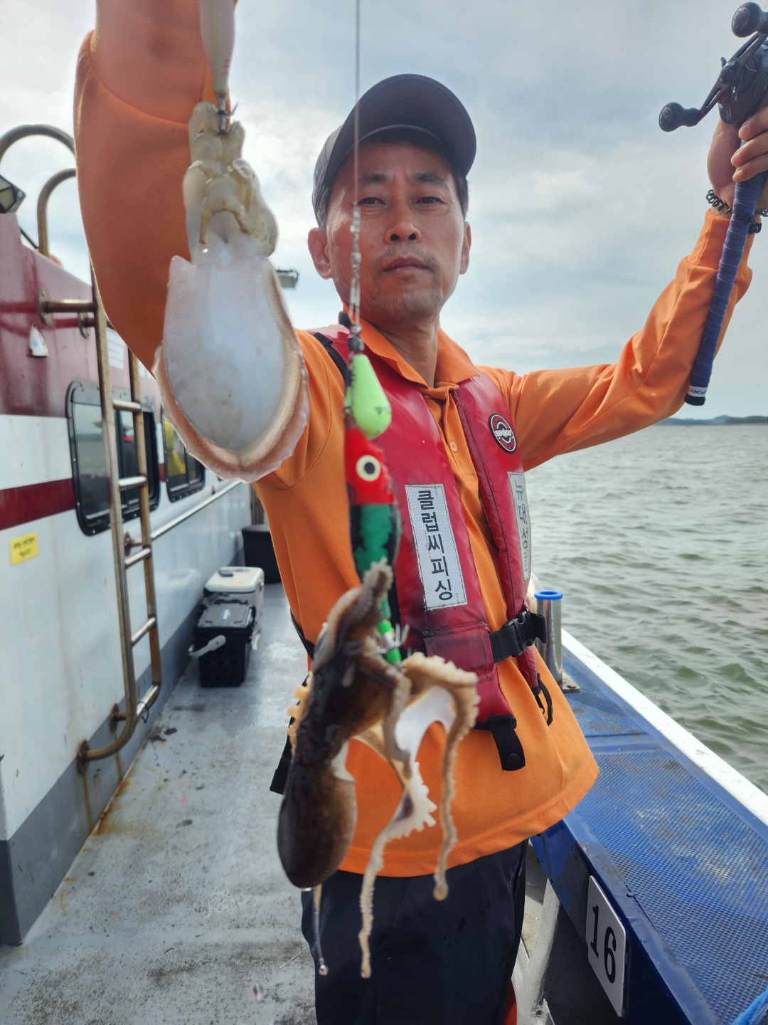 안녕하세요? 블루원호입니다.13일 하루종일 변덕스러운 날씨에 뒤숭숭 힘든날이었요우비를 입었다 벗었다, 마치 약속이라도 한듯 주꾸미도 나왔다 안나왔다이런날은 내려놓고 즐기고 와야지요~랭커두분이 함께 선수에 탑승해주셨는데요~남당댁이 함께 타는 바람에 수다삼매경,수다떨며 잡아내시는것 보면 정말 실력 대단하세요^^다음에는 방해안하겠습니다.^^::어쩌다보니 13일 갑오징어 사진만 있네요^^블루원호 주꾸미 배입니다.갑오징어 대성1호, 대양호 많이 이용해주세요!13일 블루원호와 함께해주신  조사님들 정말 수고 많으셨습니다.