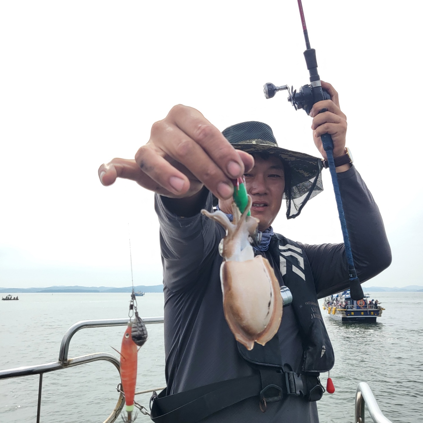 안녕하세요? 블루원호입니다.13일 하루종일 변덕스러운 날씨에 뒤숭숭 힘든날이었요우비를 입었다 벗었다, 마치 약속이라도 한듯 주꾸미도 나왔다 안나왔다이런날은 내려놓고 즐기고 와야지요~랭커두분이 함께 선수에 탑승해주셨는데요~남당댁이 함께 타는 바람에 수다삼매경,수다떨며 잡아내시는것 보면 정말 실력 대단하세요^^다음에는 방해안하겠습니다.^^::어쩌다보니 13일 갑오징어 사진만 있네요^^블루원호 주꾸미 배입니다.갑오징어 대성1호, 대양호 많이 이용해주세요!13일 블루원호와 함께해주신 조사님들 정말 수고 많으셨습니다.